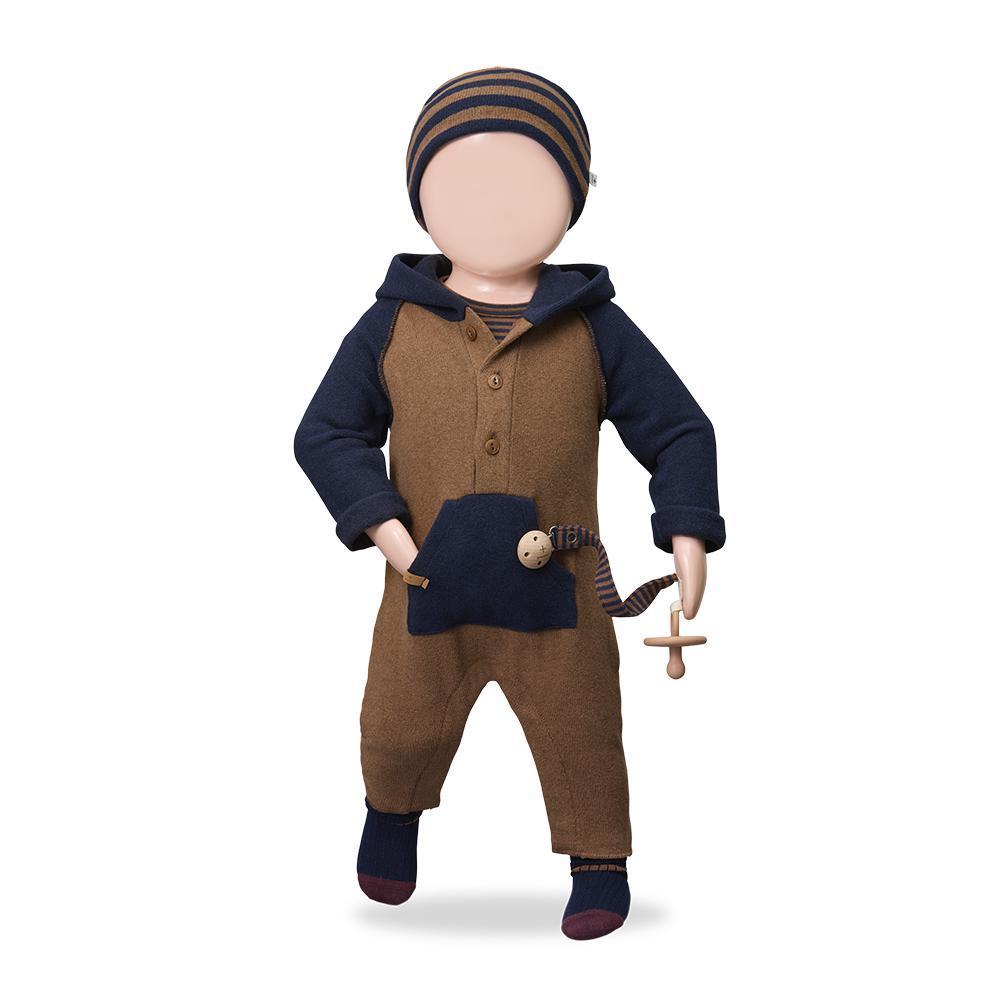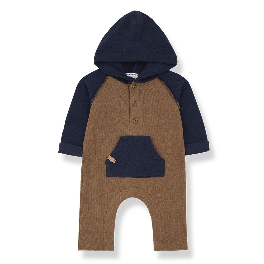 1+ In The Family - Hooded Color Block Jumpsuit - Chestnut + Navy