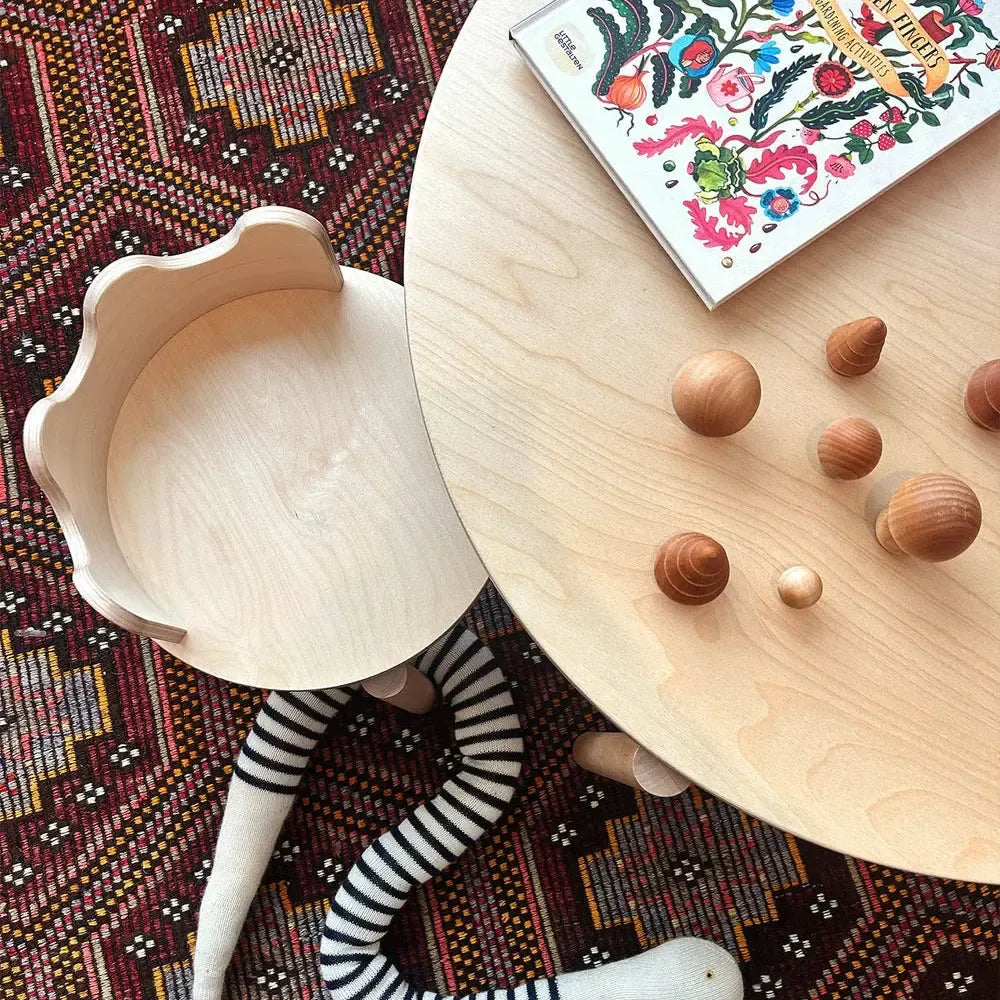 Transform playtime with the Moss Table — a round, beautifully crafted play table designed for toddlers (18 months+). Built with durable hardwood and a generous surface, it’s perfect for crafts, snacks, building blocks, or imaginative tea parties. Every detail — from the stable, stylish legs to the smooth, non-toxic finish — is crafted for safety, style, and daily use. The modern design seamlessly complements any playroom or nursery décor, making it not just a play table but a centerpiece for creativity and connection.