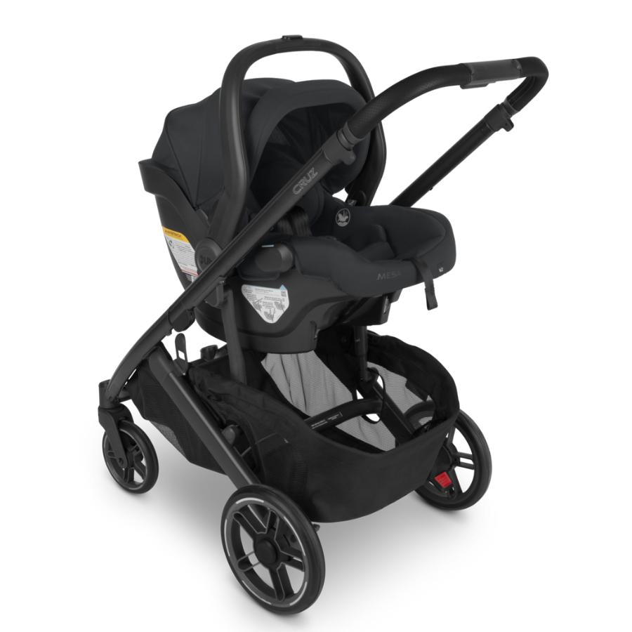 • Bassinet, Mesa®, and Aria™ Infant Car Seats attach directly to stroller without adapters