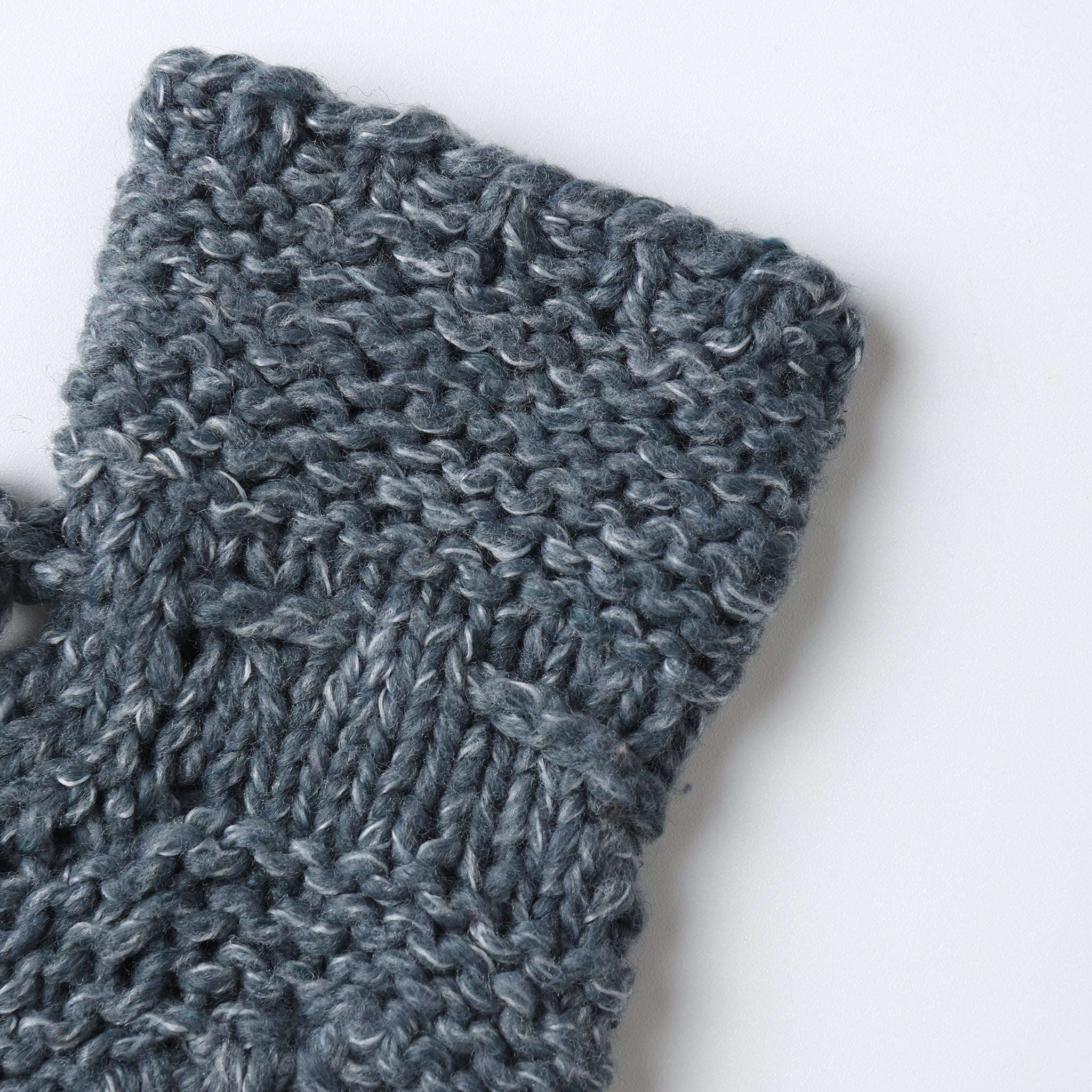 Adorable knit booties with ties at the ankle for a snug, secure fit.