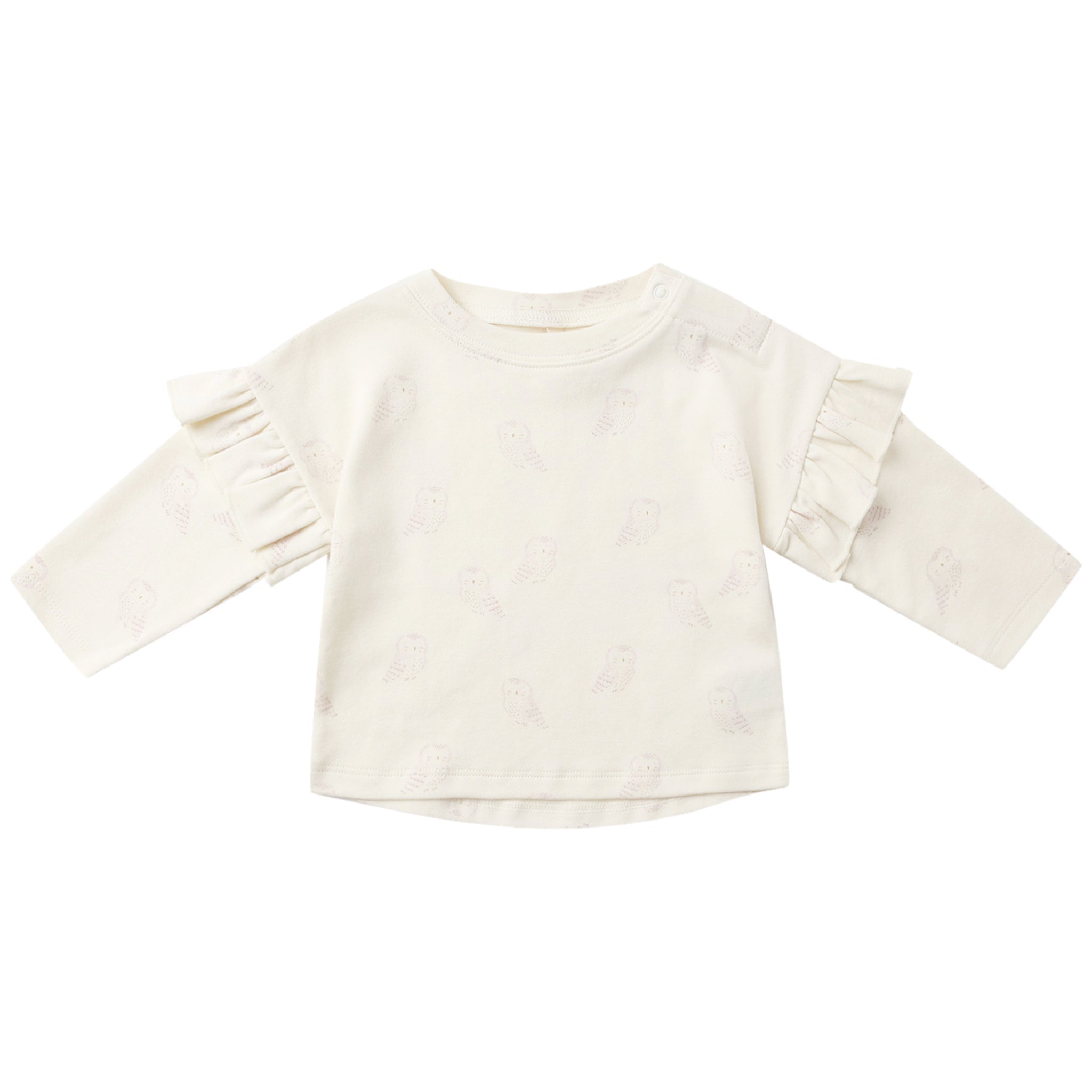 Quincy Mae - Organic Long Sleeve Ruffle Tee - Snow Owls