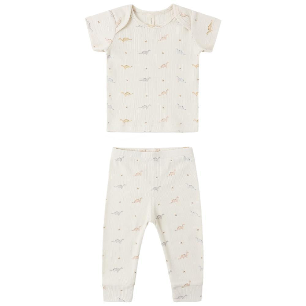 Quincy Mae - Organic Ribbed Pajama Set - Dinos
