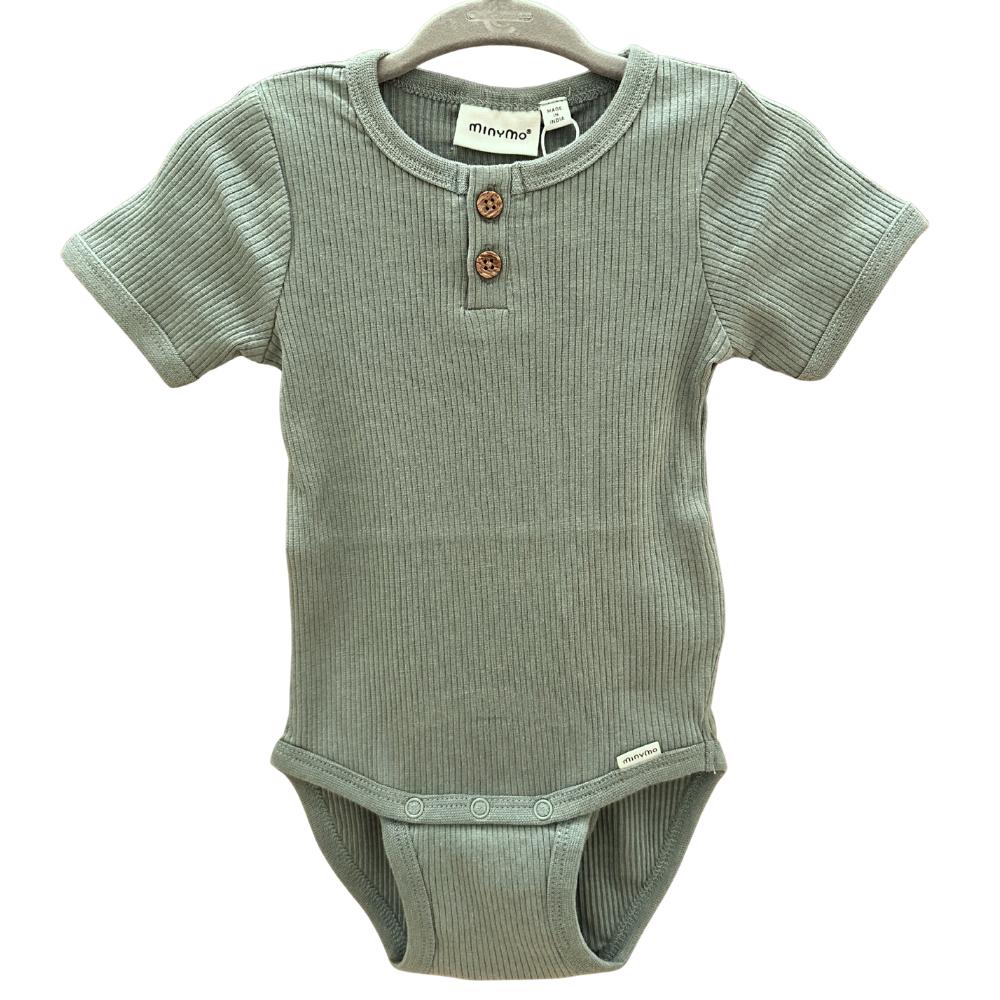 Minymo - Short Sleeve Ribbed Bodysuit - Sage