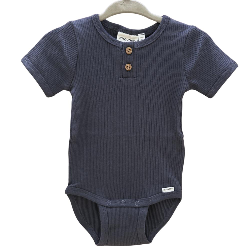 Minymo - Short Sleeve Ribbed Bodysuit - Navy