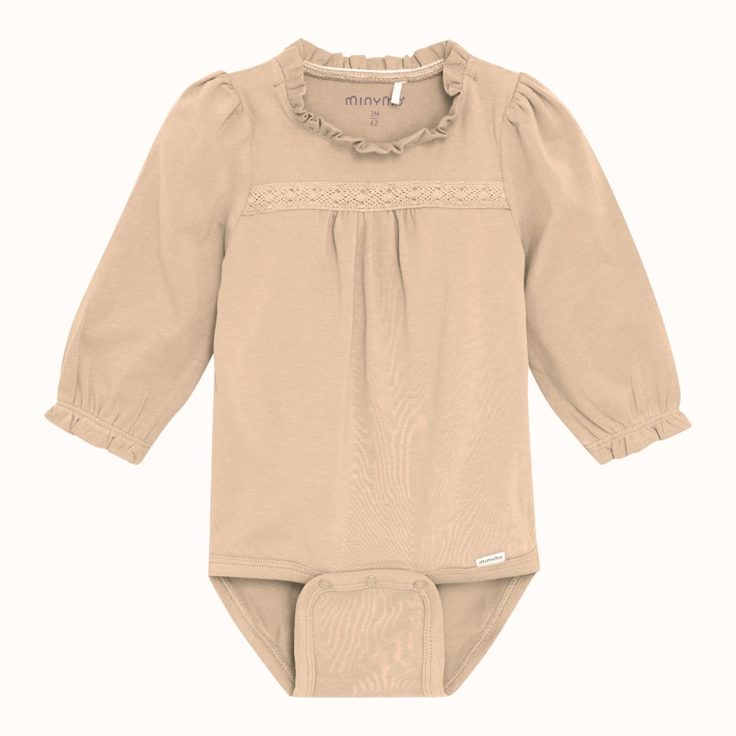 Minymo - Long Sleeve Ruffle Neck Bodysuit - Cream