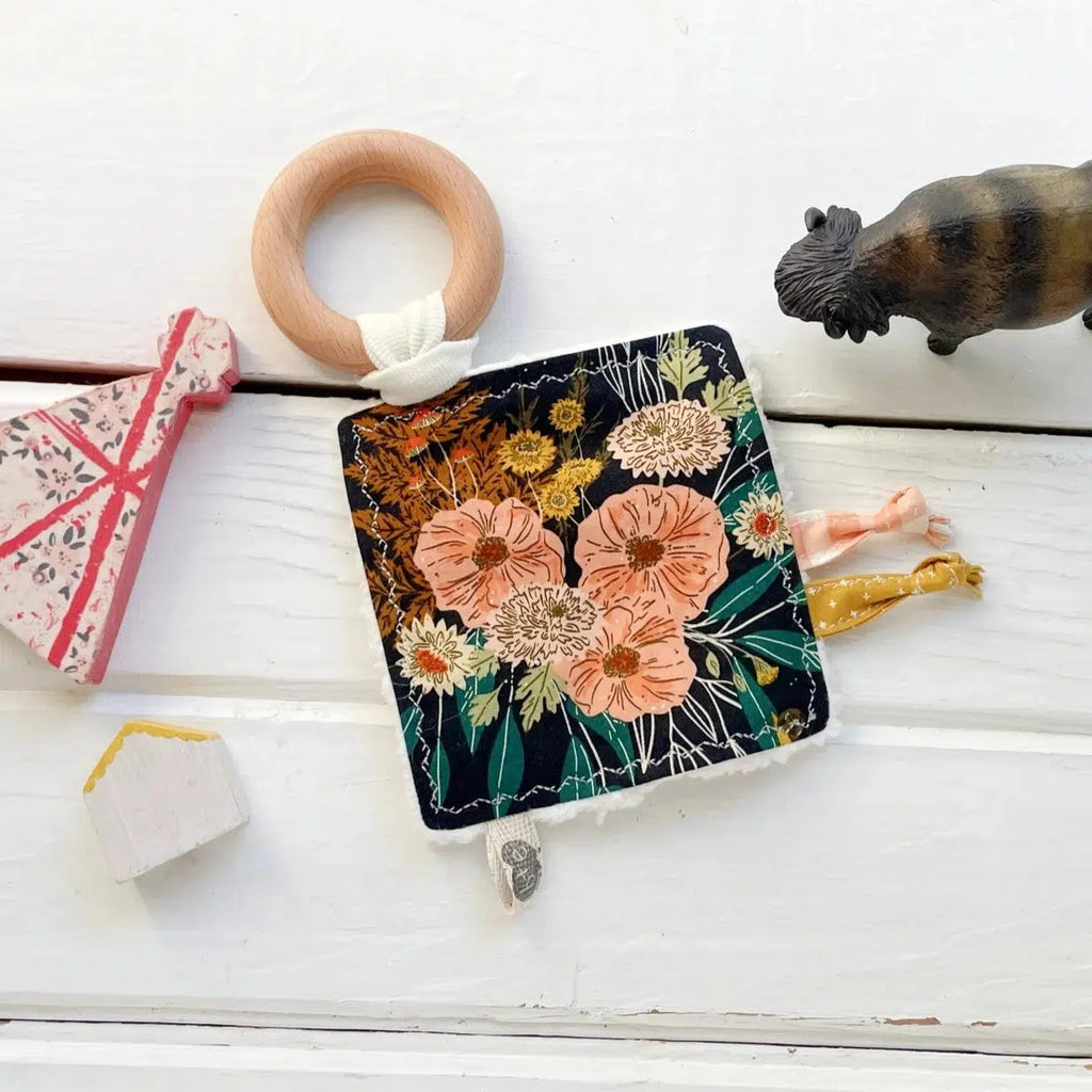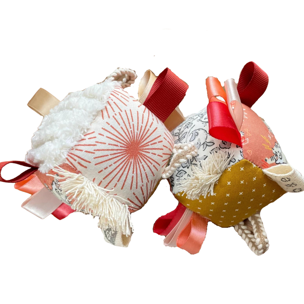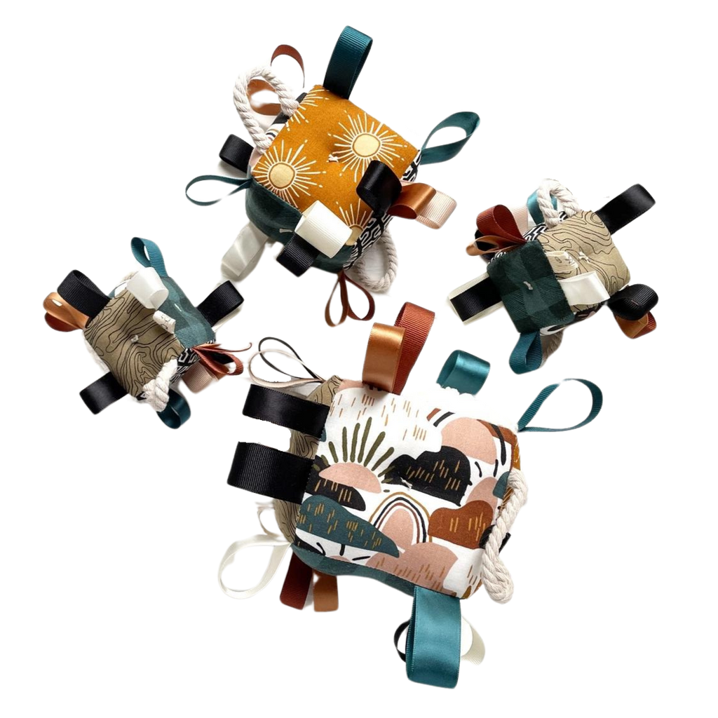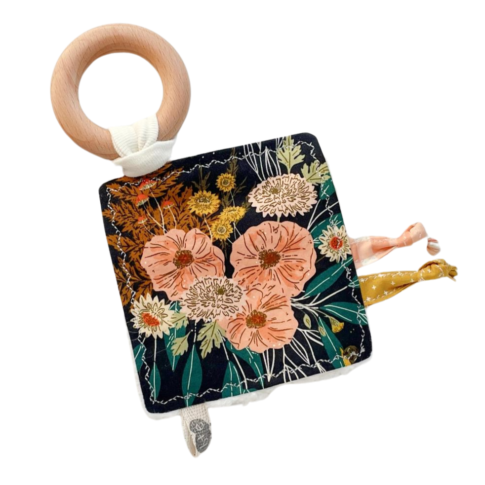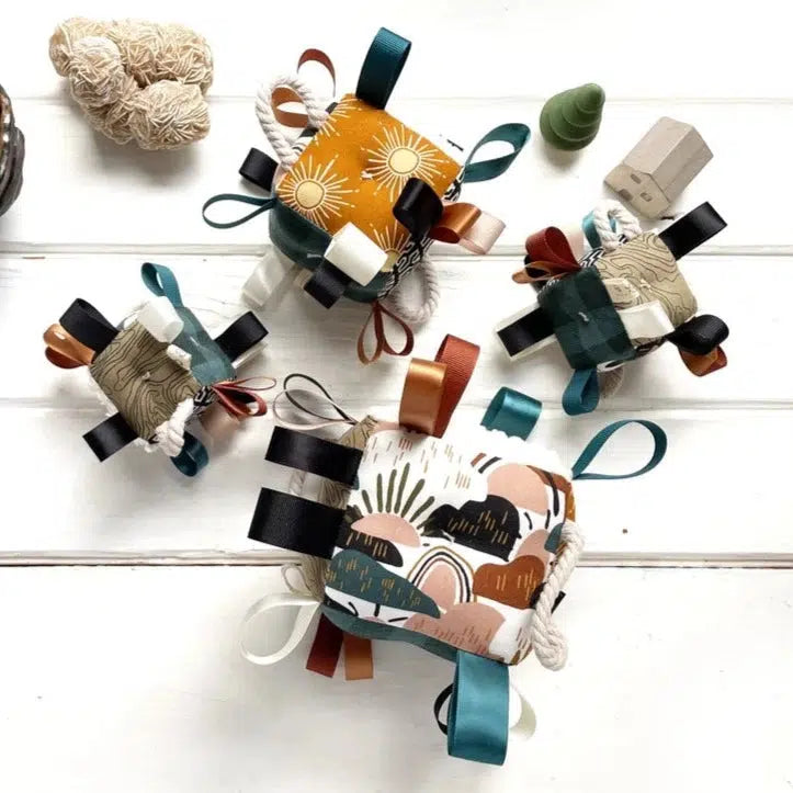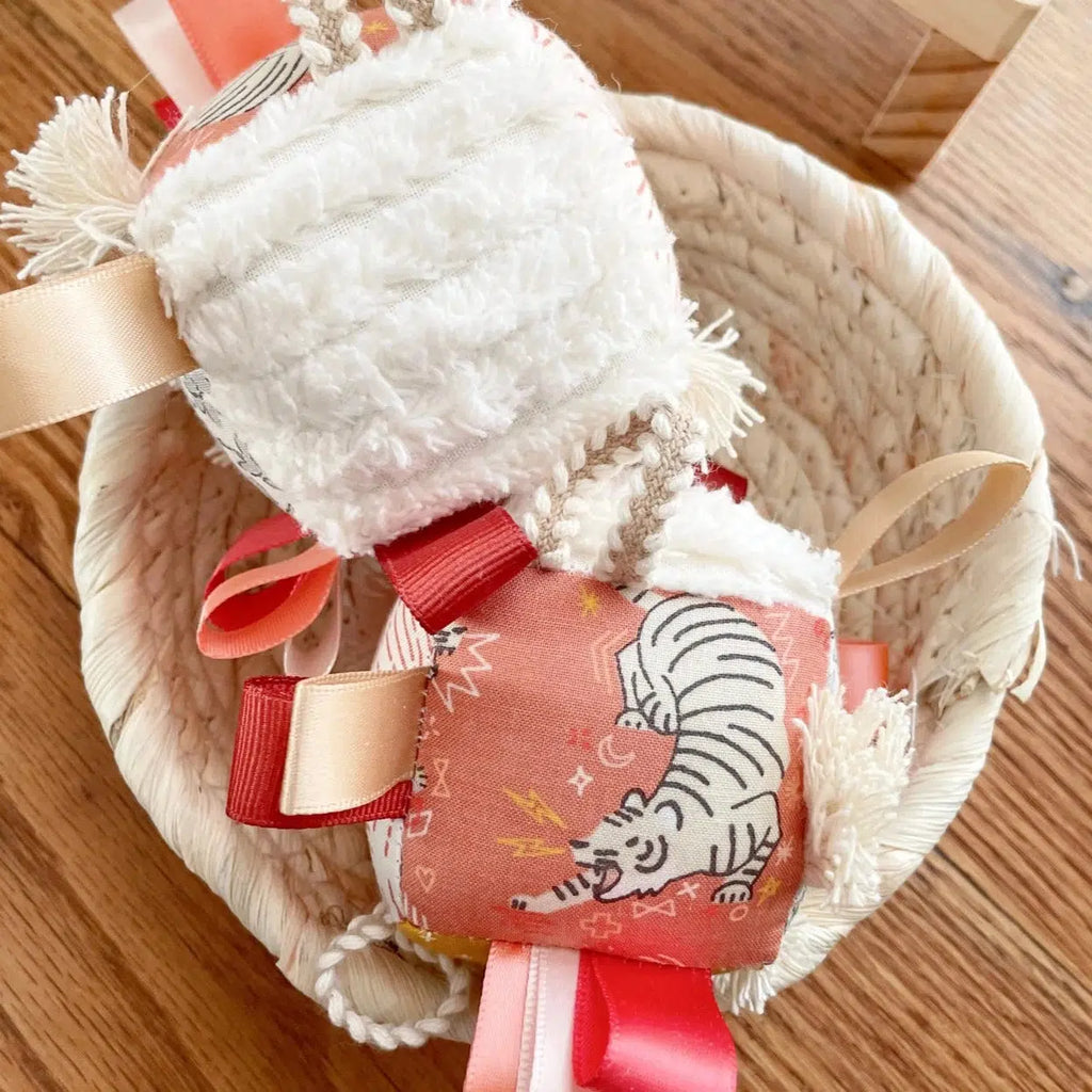 The Bird + Elephant - Handmade Soft Sensory Block - 3" Boho Tiger Floral Fringe