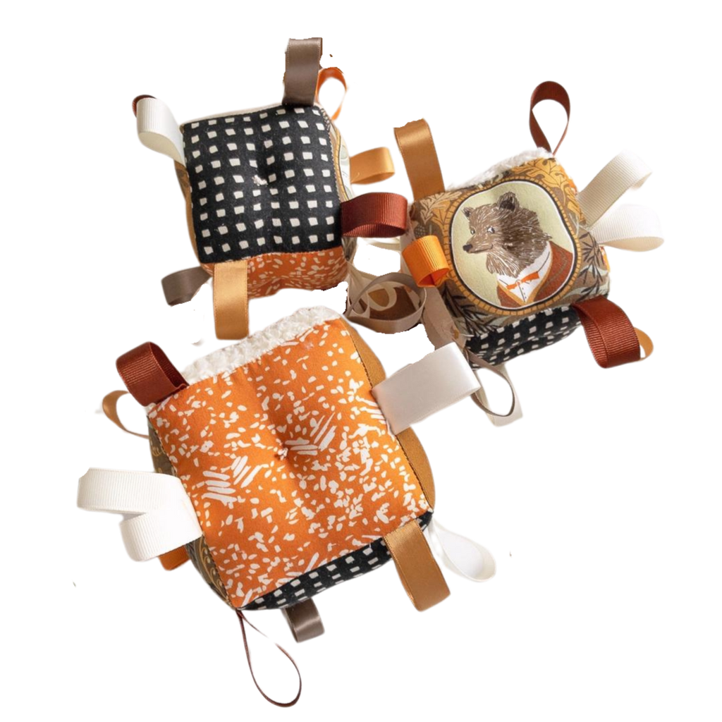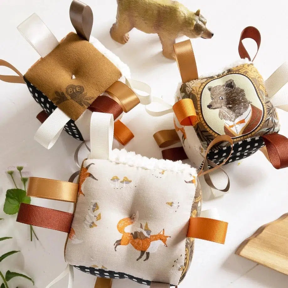 The Bird + Elephant - Handmade Soft Sensory Block - 3" Burnt Sienna Woodland Animals