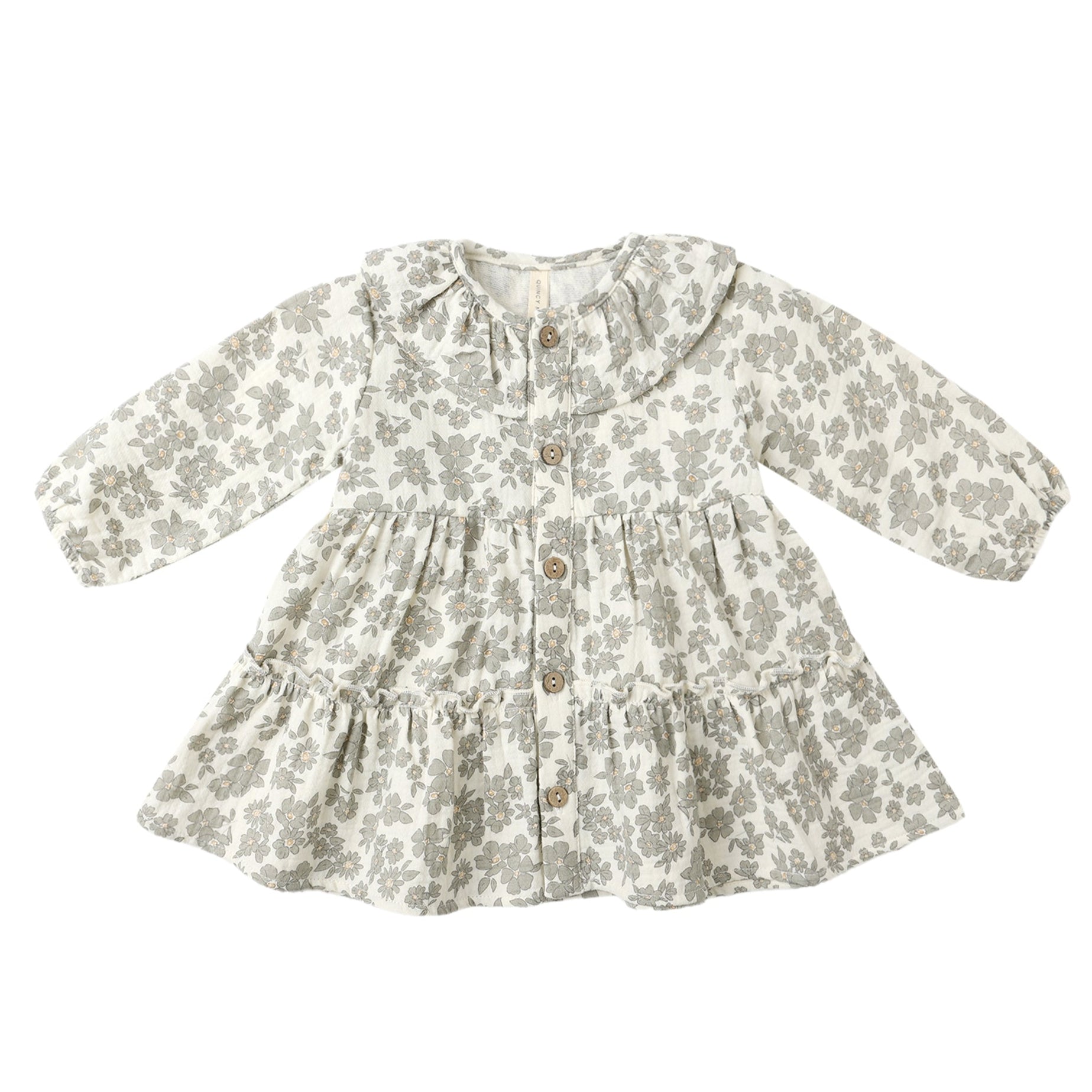 Quincy Mae - Organic Ruffle Collar Dress - Green Floral