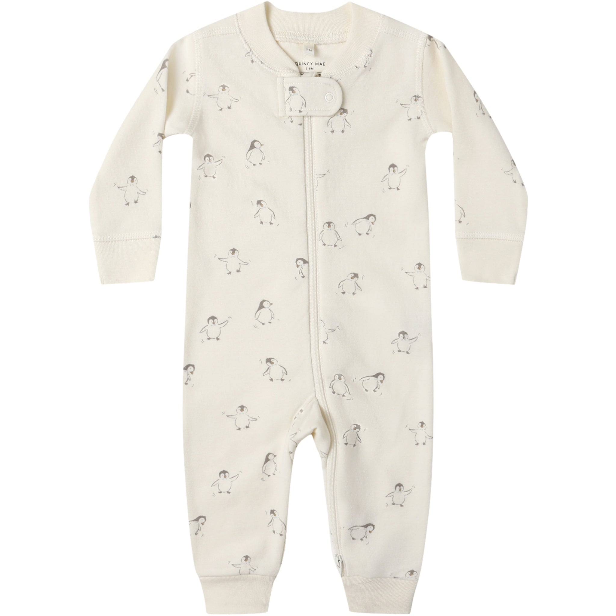 Quincy Mae - Organic Long Sleeve Zipper Romper - Penguins
