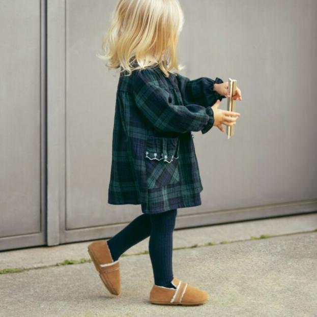 Leggings in recycled and organic ribbed cotton jersey. Decorative ribbon and buttons on the front.