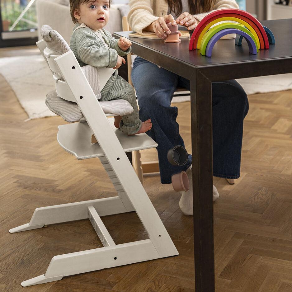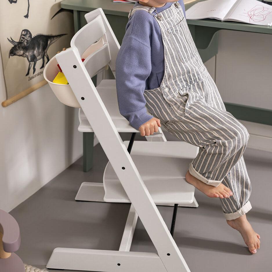 Tripp Trapp® is an ingenious chair designed by Peter Opsvik that revolutionized the children's chair category in 1972, when the Tripp Trapp® was first launched. Tripp Trapp® fits right up to your dining table, bringing your baby into the heart of your family, allowing them to learn and develop alongside you. The intelligent, adjustable design allows freedom of movement with both depth and height adjustable seat and footplates. When adjusted correctly, your child is ensured a comfortable and ergonomic seating position at any age. Stokke® is pleased that our High Chairs are certified by JPMA and meet or exceed all ASTM safety standards. Tripp Trapp® chairs are produced in the European Union. All wood and wood based parts are required to meet E.U. Timber Regulations and in so doing, support a responsible forestry and wood industry.
