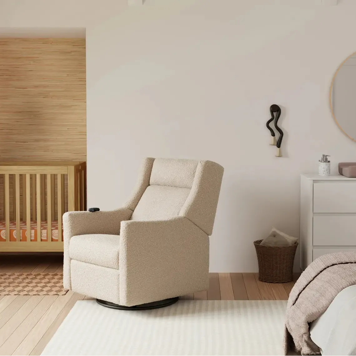 Babyletto - Kiwi Deluxe Heat + Massage Power Recliner w/Adjustable Headrest - Almond Teddy Loop