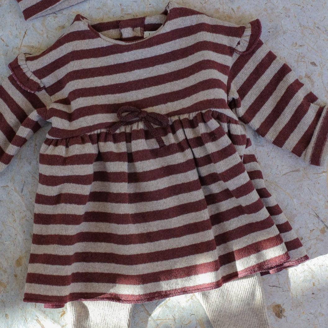 1+ In The Family - Ruffle Shoulder Dress - Eggplant Stripe