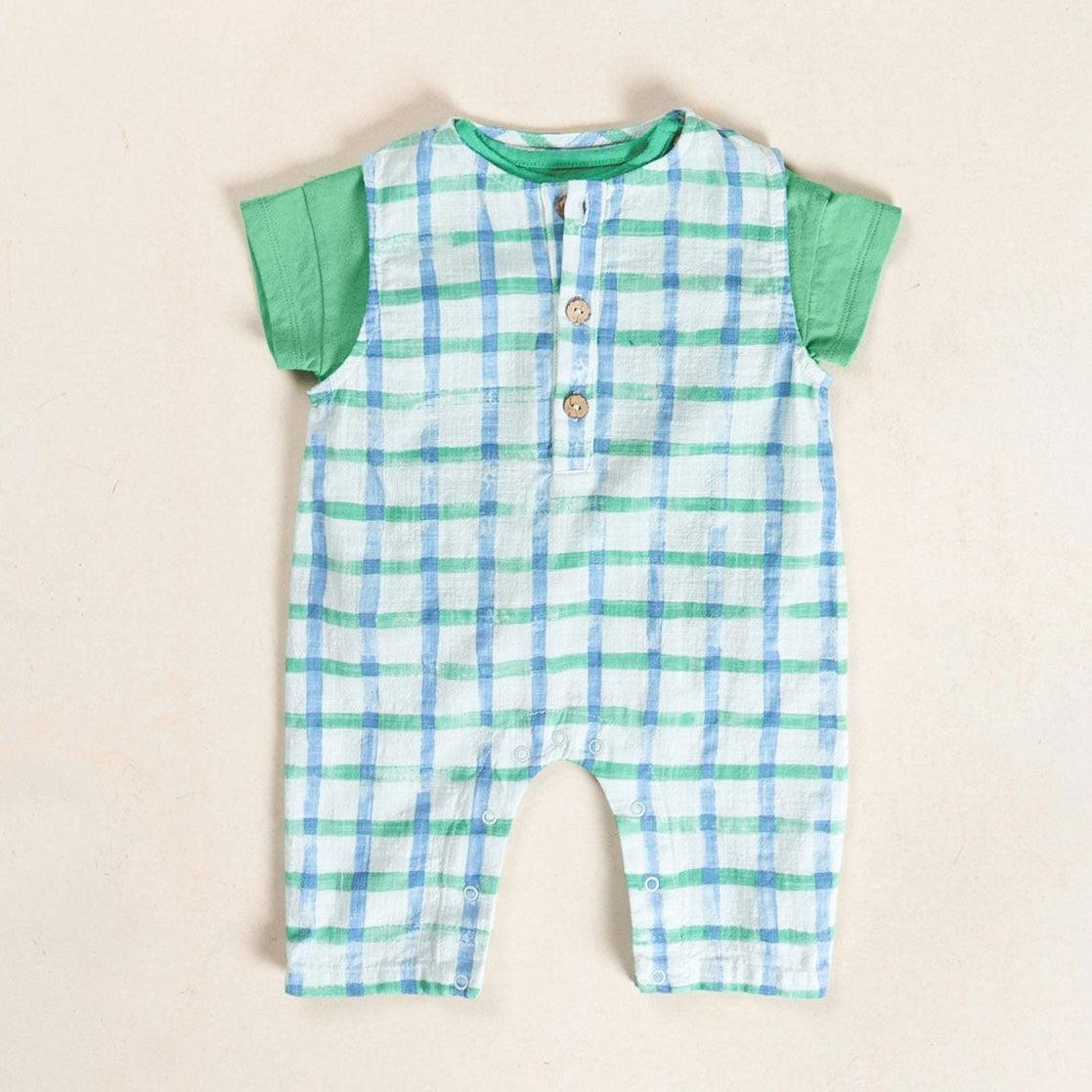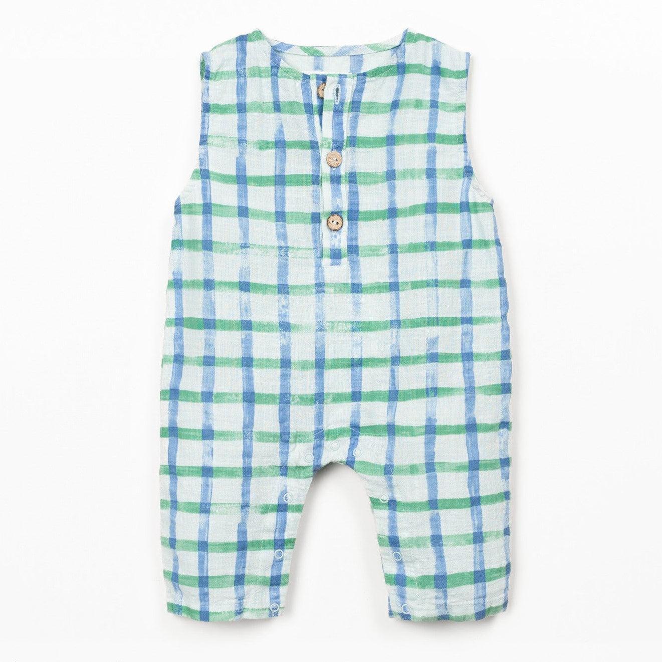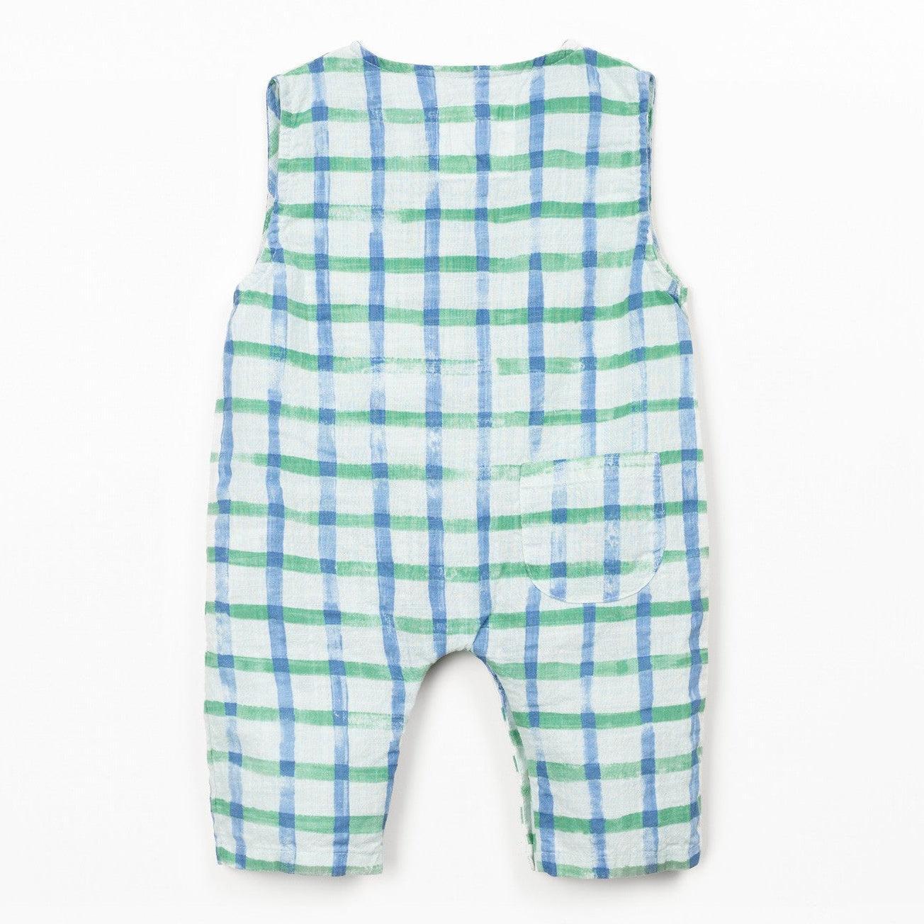Play Up - Organic Cotton Printed Romper - Blue Check