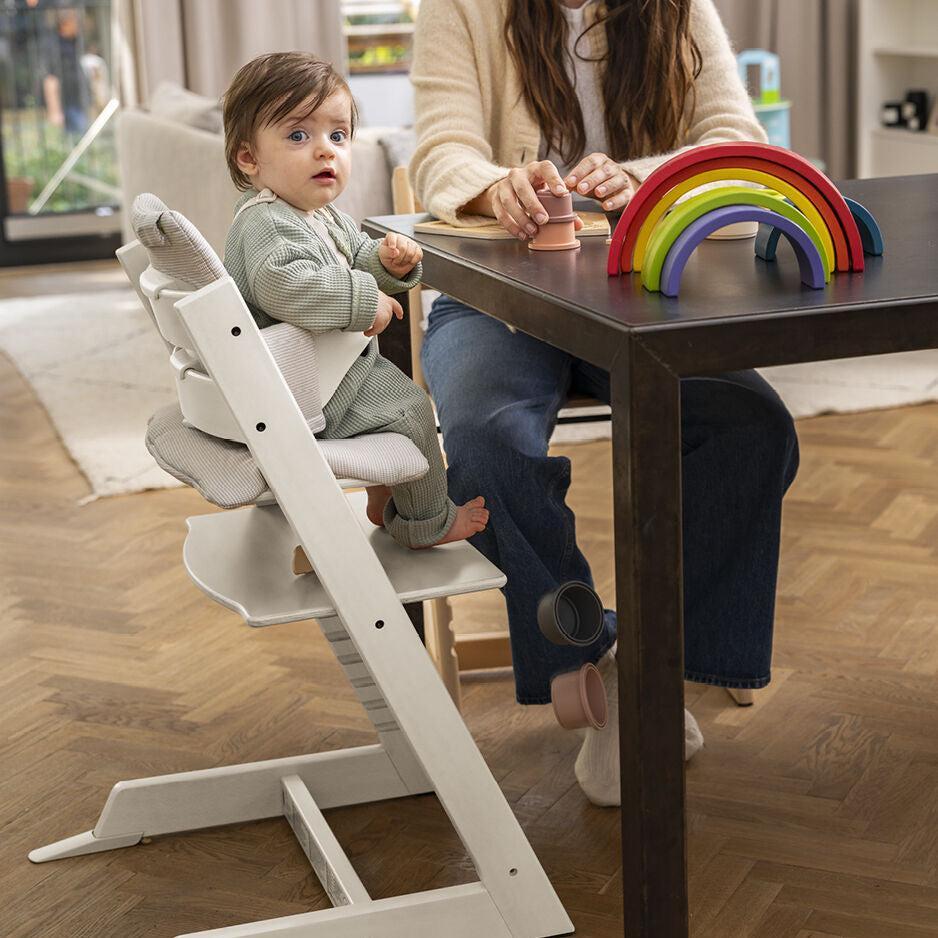 Tripp Trapp® is an ingenious chair designed by Peter Opsvik that revolutionized the children's chair category in 1972, when the Tripp Trapp® was first launched. Tripp Trapp® fits right up to your dining table, bringing your baby into the heart of your family, allowing them to learn and develop alongside you. The intelligent, adjustable design allows freedom of movement with both depth and height adjustable seat and footplates. When adjusted correctly, your child is ensured a comfortable and ergonomic seating position at any age. Stokke® is pleased that our High Chairs are certified by JPMA and meet or exceed all ASTM safety standards. Tripp Trapp® chairs are produced in the European Union. All wood and wood based parts are required to meet E.U. Timber Regulations and in so doing, support a responsible forestry and wood industry.