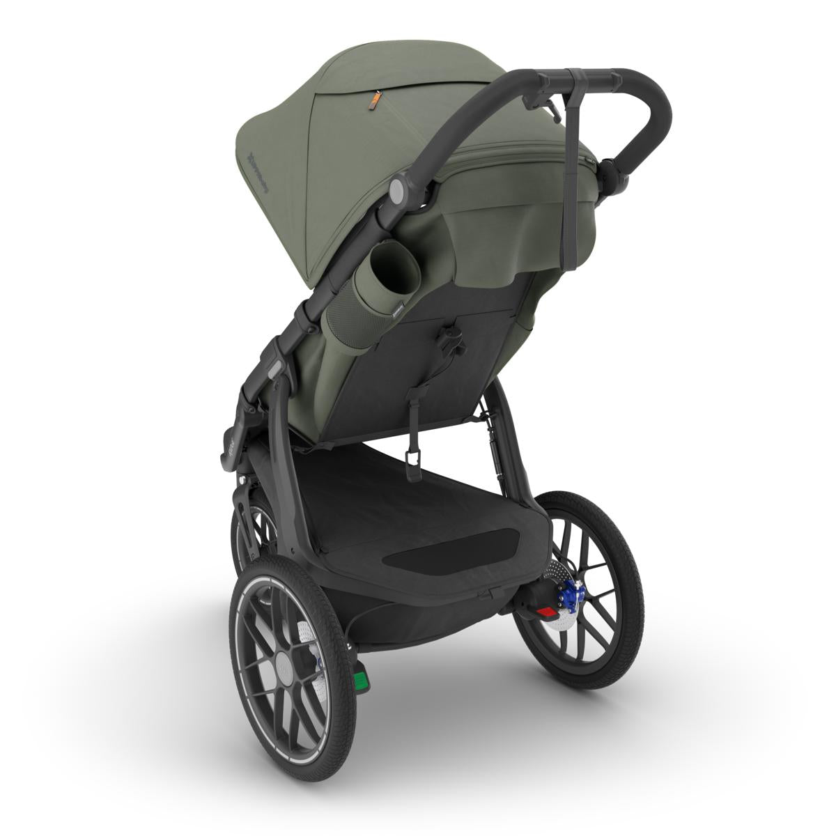 - Front wheel lock with visual indicator for added stability while jogging