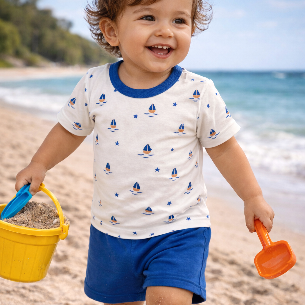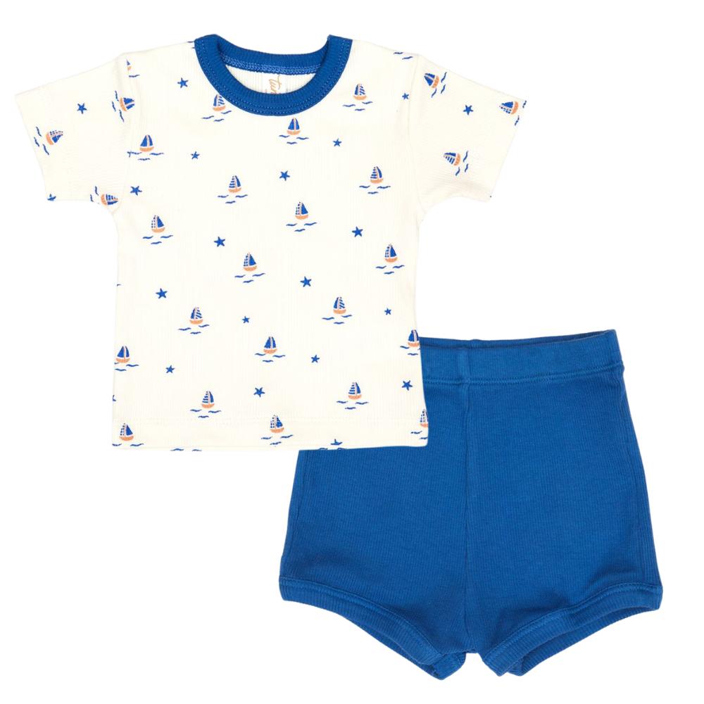 Tun Tun (Peru) - Cotton Short Sleeve Shirt + Shorts Set - Blue Sailboats