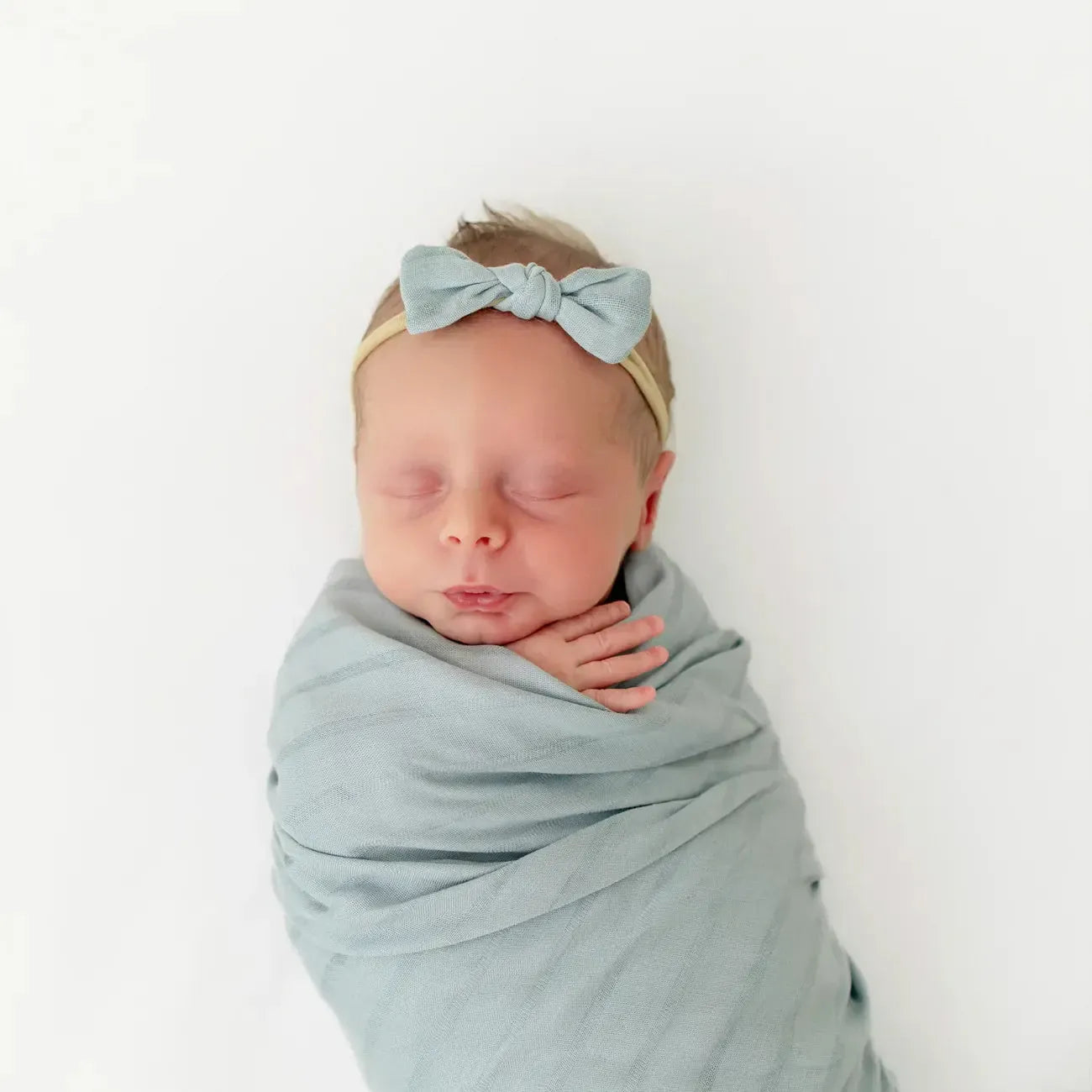Add a touch of rustic sweetness to your little one’s look with this easy-to-wear, knotted bow made from textured muslin. A soft, stretchy band made from nylon is super gentle on baby-fine hair and stays in place, no matter how much your little one crawls, rolls, or runs throughout the day
