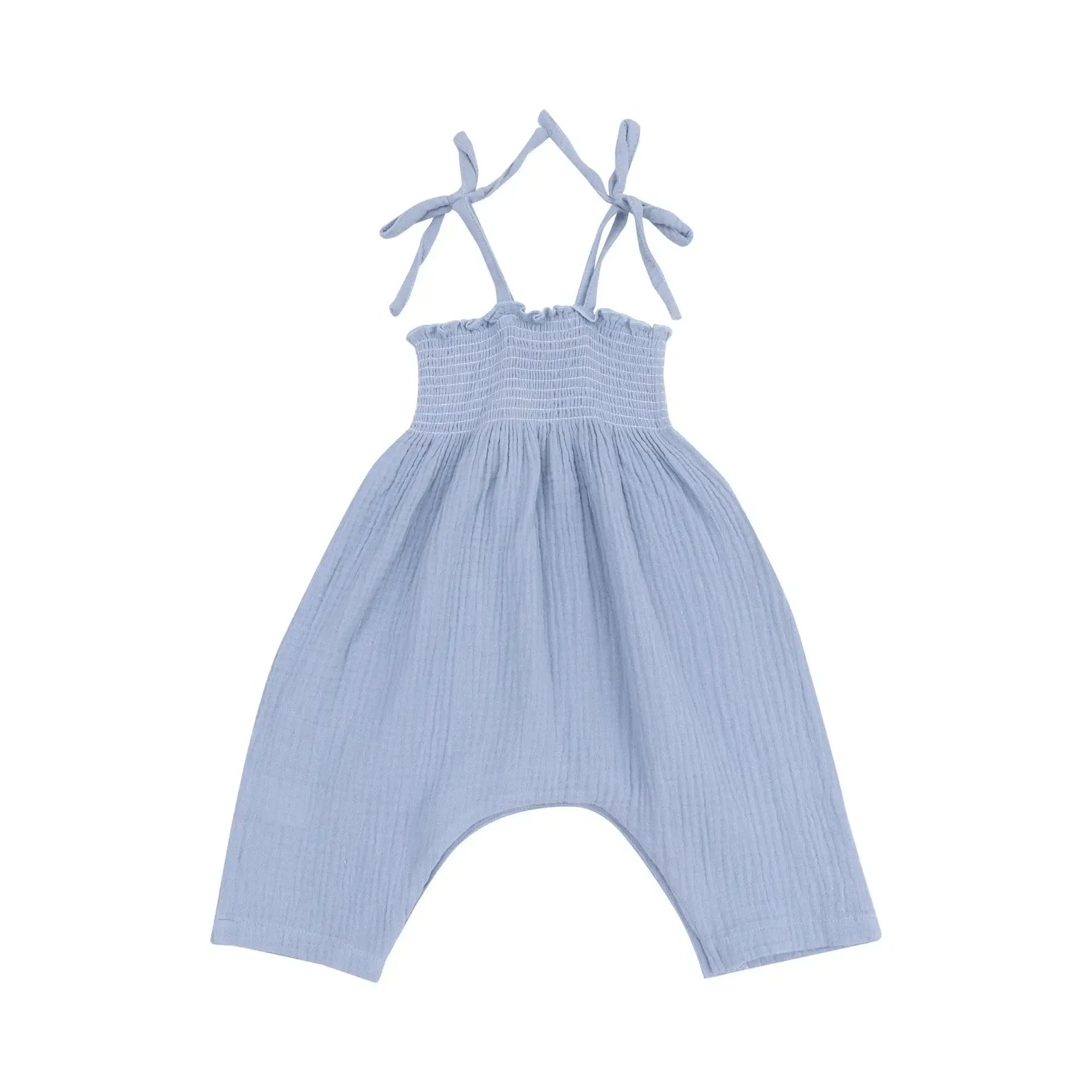 Angel Dear - Organic Smocked Tie-Shoulder Romper - Dusty Blue