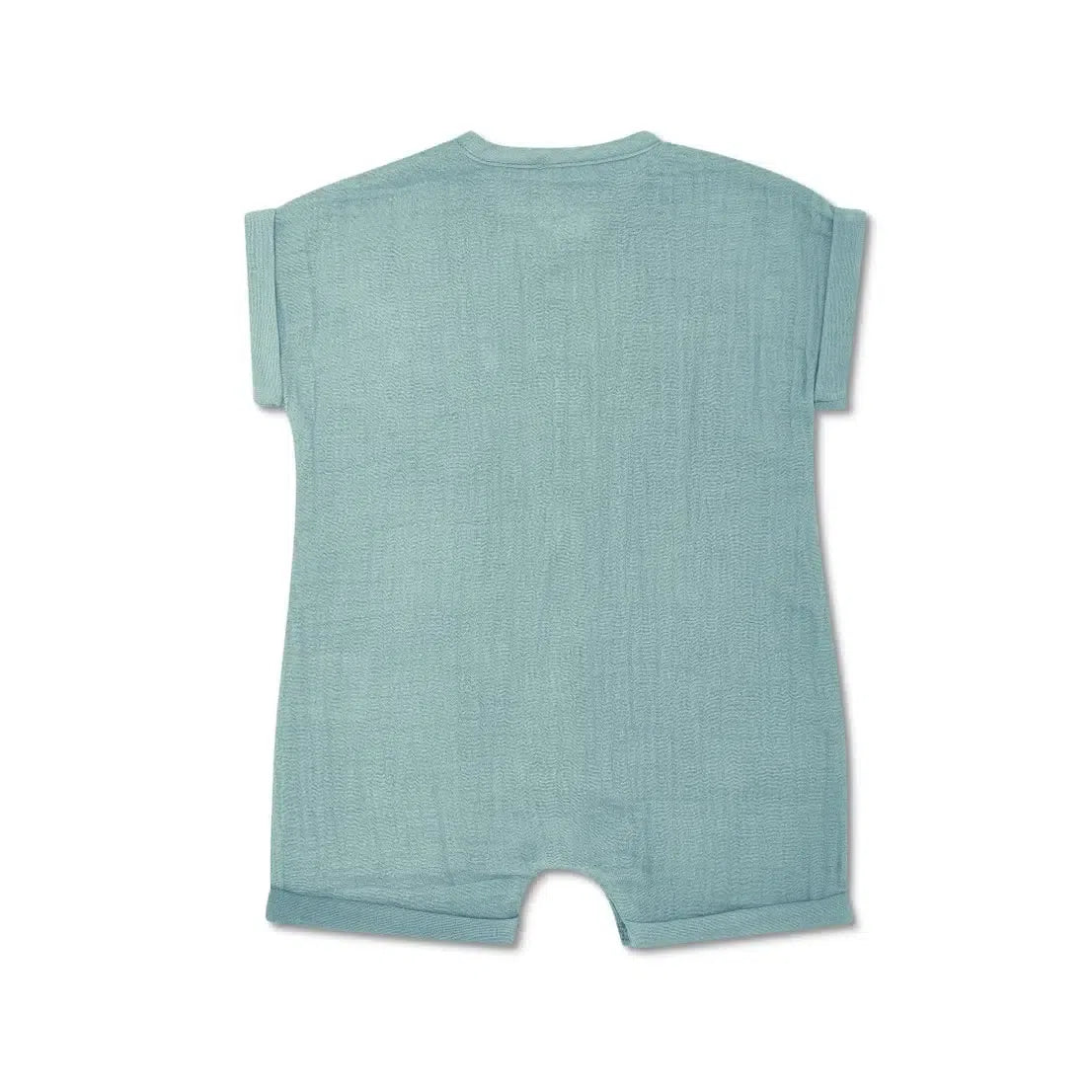 Apple Park - Organic Muslin Short Sleeve Romper - Teal