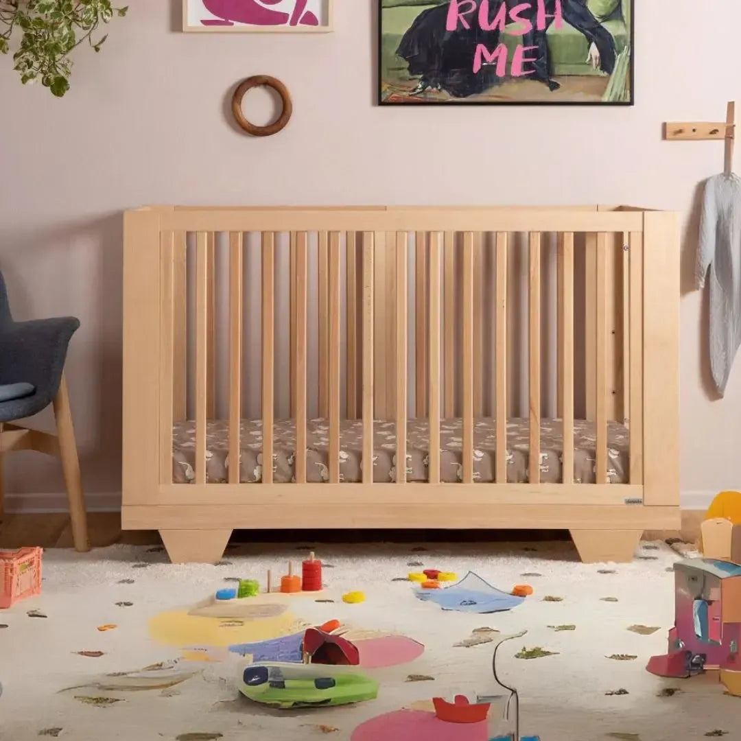 • Solid beechwood, baby-safe finish - including mattress base