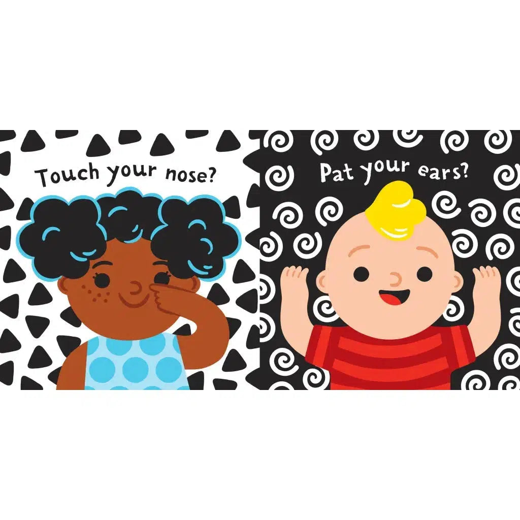 Wiggle your toes, kick your feet, and touch your nose in this sweet book that is indestructible. Teach little readers about their bodies in this high-color high-contrast book with black and white patterns and bold colors that help baby focus in their early stages.