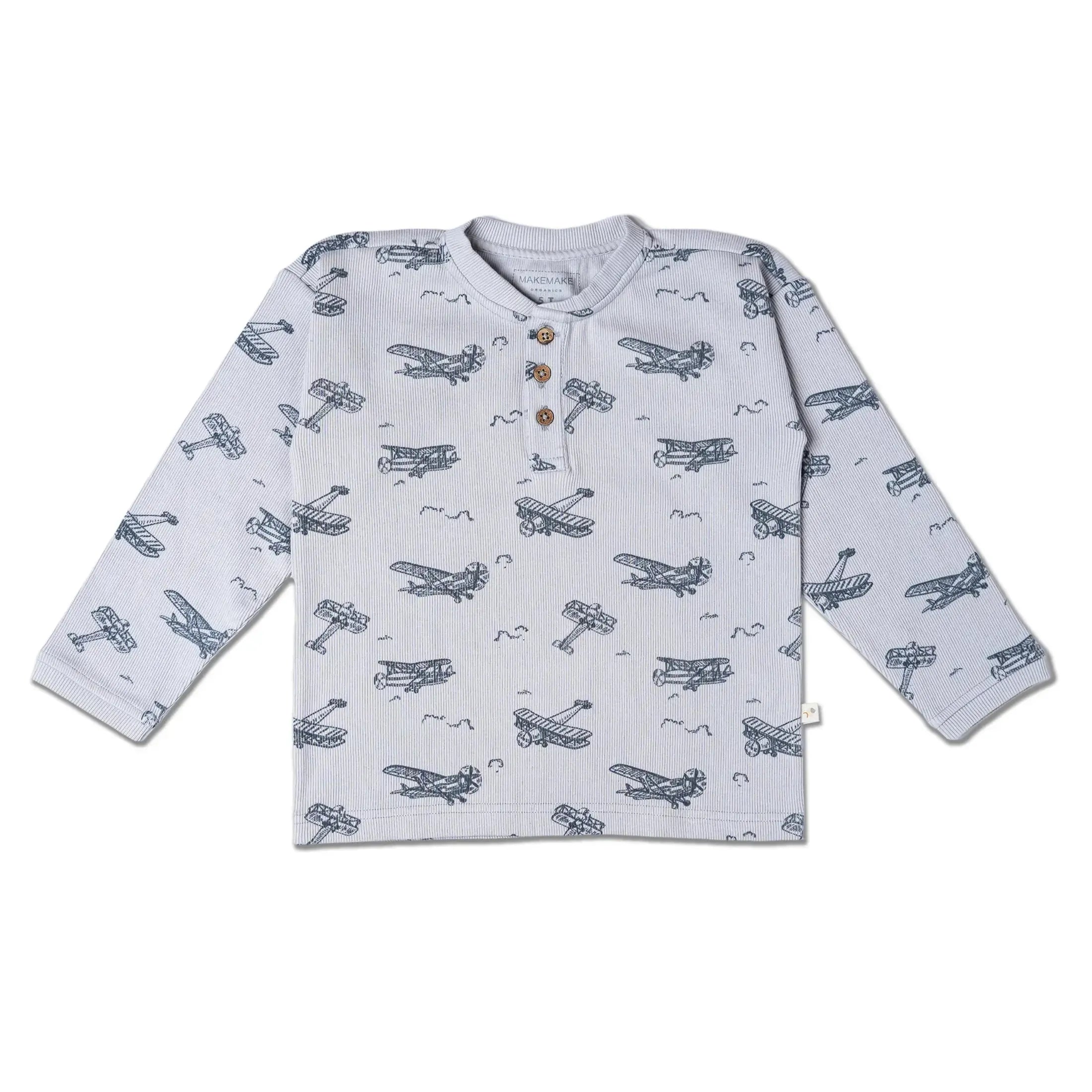 Makemake Organics - Long Sleeve Henley - Airplanes