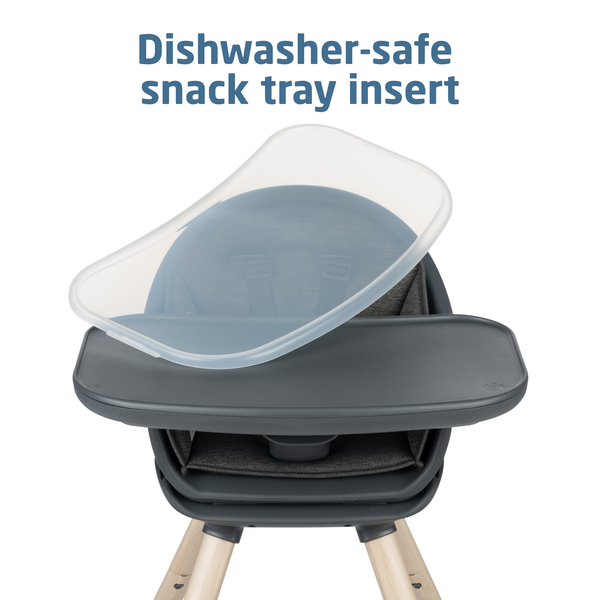 Mealtimes are messy, that’s why Moa is designed for easy clean-up. With a water-repellent machine-washable inlay, washable 5-point harness, and dishwasher-safe tray, your little one’s mealtime area is sure to stay as clean as you want it to be.