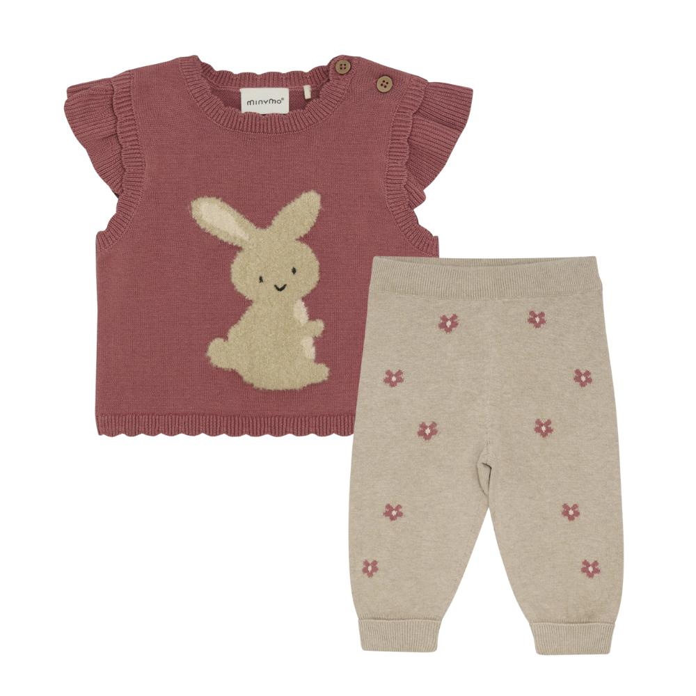 Minymo - Knit Vest + Pant Set - Flower Bunny