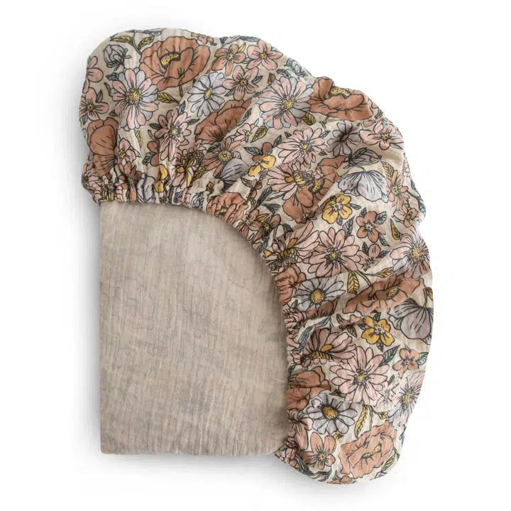 Mushie - Extra Soft Muslin Crib Sheet - Retro Flowers