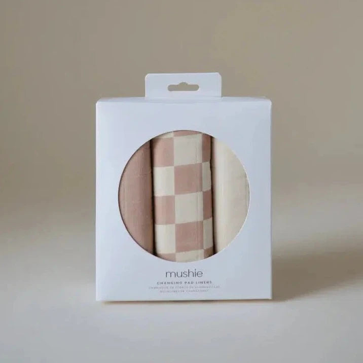 Mushie - Organic Cotton Changing Pad Liner 3-Pack - Check Combo