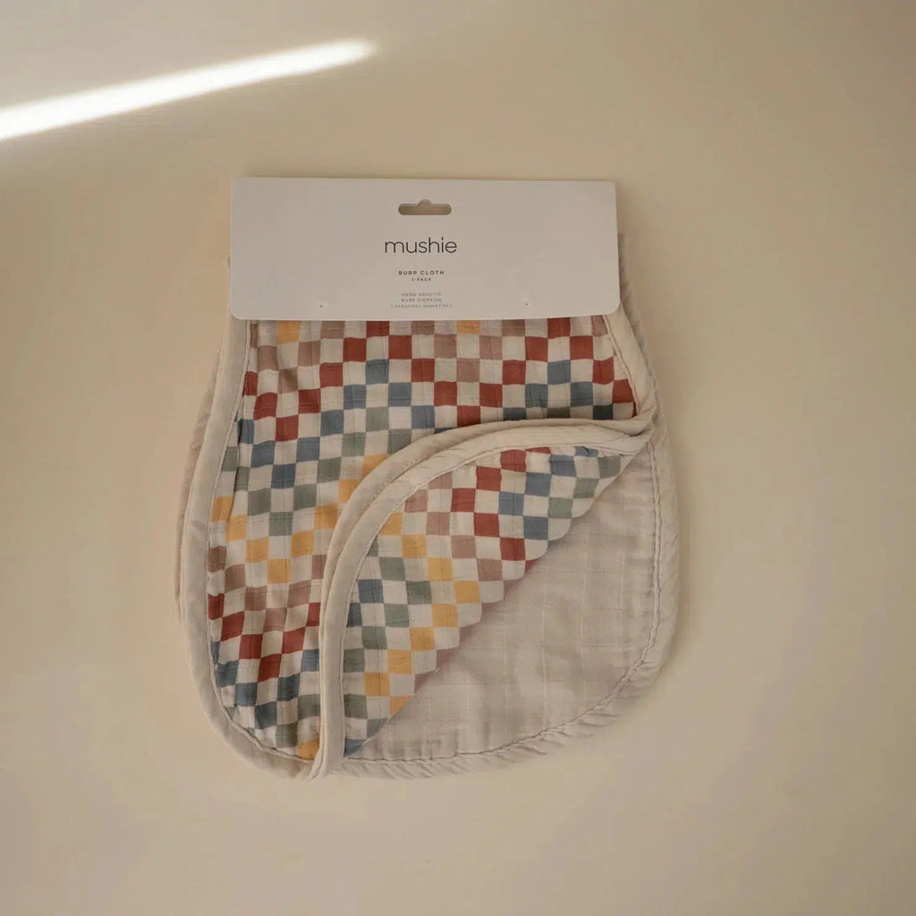 Mushie - Organic Cotton Muslin Burp Cloth 2-Pack - Retro Check + Fog