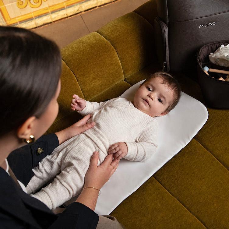 • Embroidered Nuna logo on toiletry pouch and changing pad clutch
