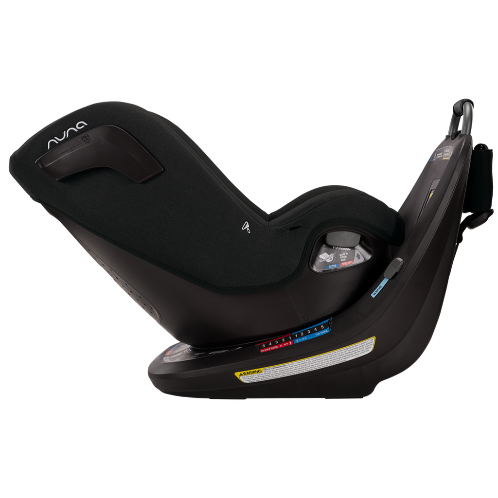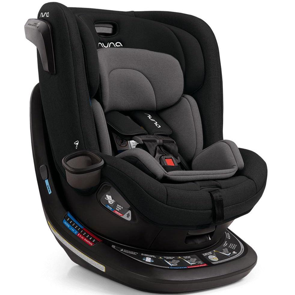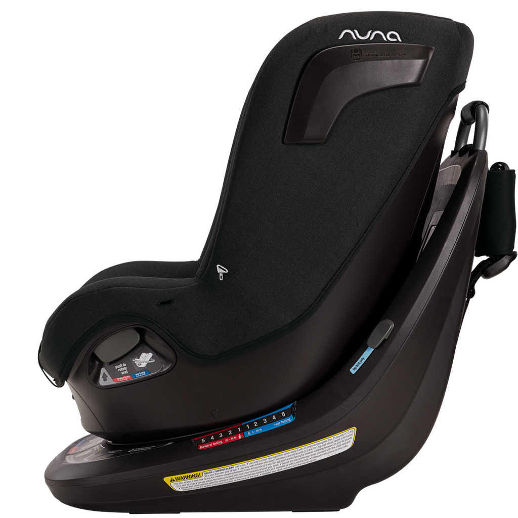 The Nuna REVV rotating convertible car seat is ready to revolutionize your travel experience. One simple install then rotates the seat 360° effortlessly for a stress-free easy-in, easy-out between adventures. The REVV converts from a rear to a forward-facing car seat as your little one grows from newborn up to 40 pounds. The sleek lines provide a stylish look for you, while the luxurious fabrics and ventilation provide a comfortable ride for them. REVV provides security with Steel Strength Technology™, Aeroflex™ side impact protection, and a ten-position, bubble-free recline for a snug and secure comfort. REVV is the stress-free rotating seat of your dreams.
