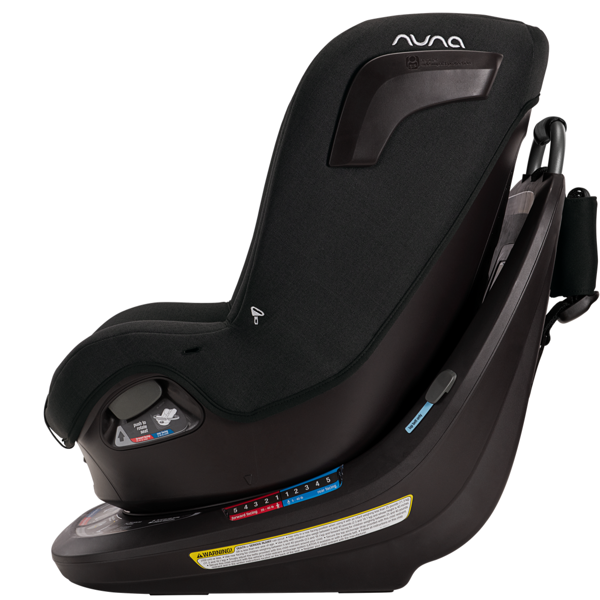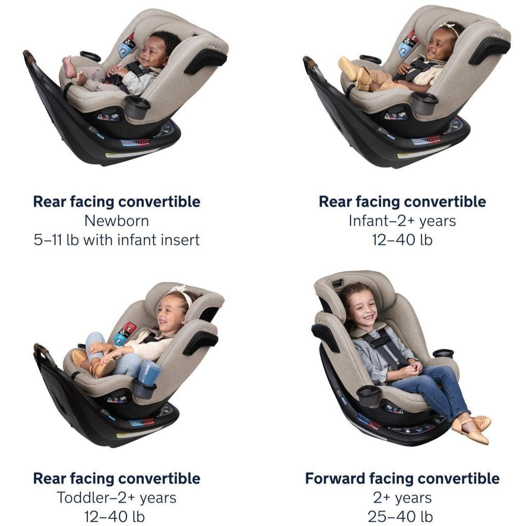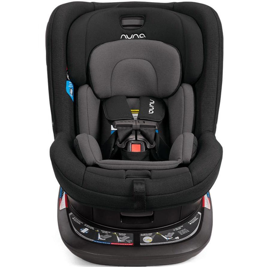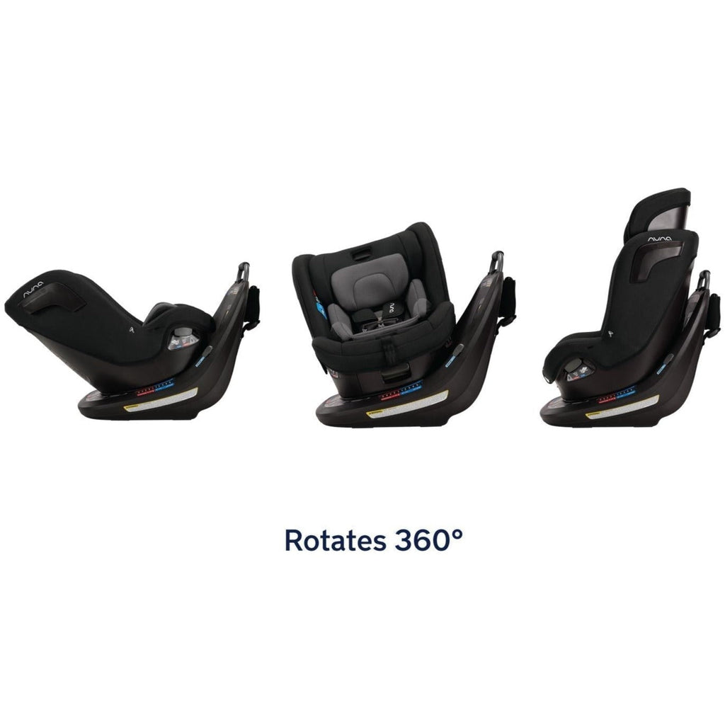 The Nuna REVV rotating convertible car seat is ready to revolutionize your travel experience. One simple install then rotates the seat 360° effortlessly for a stress-free easy-in, easy-out between adventures. The REVV converts from a rear to a forward-facing car seat as your little one grows from newborn up to 40 pounds. The sleek lines provide a stylish look for you, while the luxurious fabrics and ventilation provide a comfortable ride for them. REVV provides security with Steel Strength Technology™, Aeroflex™ side impact protection, and a ten-position, bubble-free recline for a snug and secure comfort. REVV is the stress-free rotating seat of your dreams.