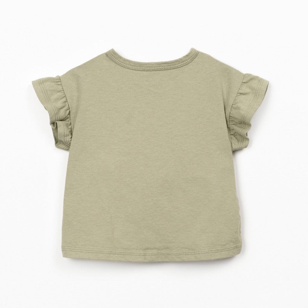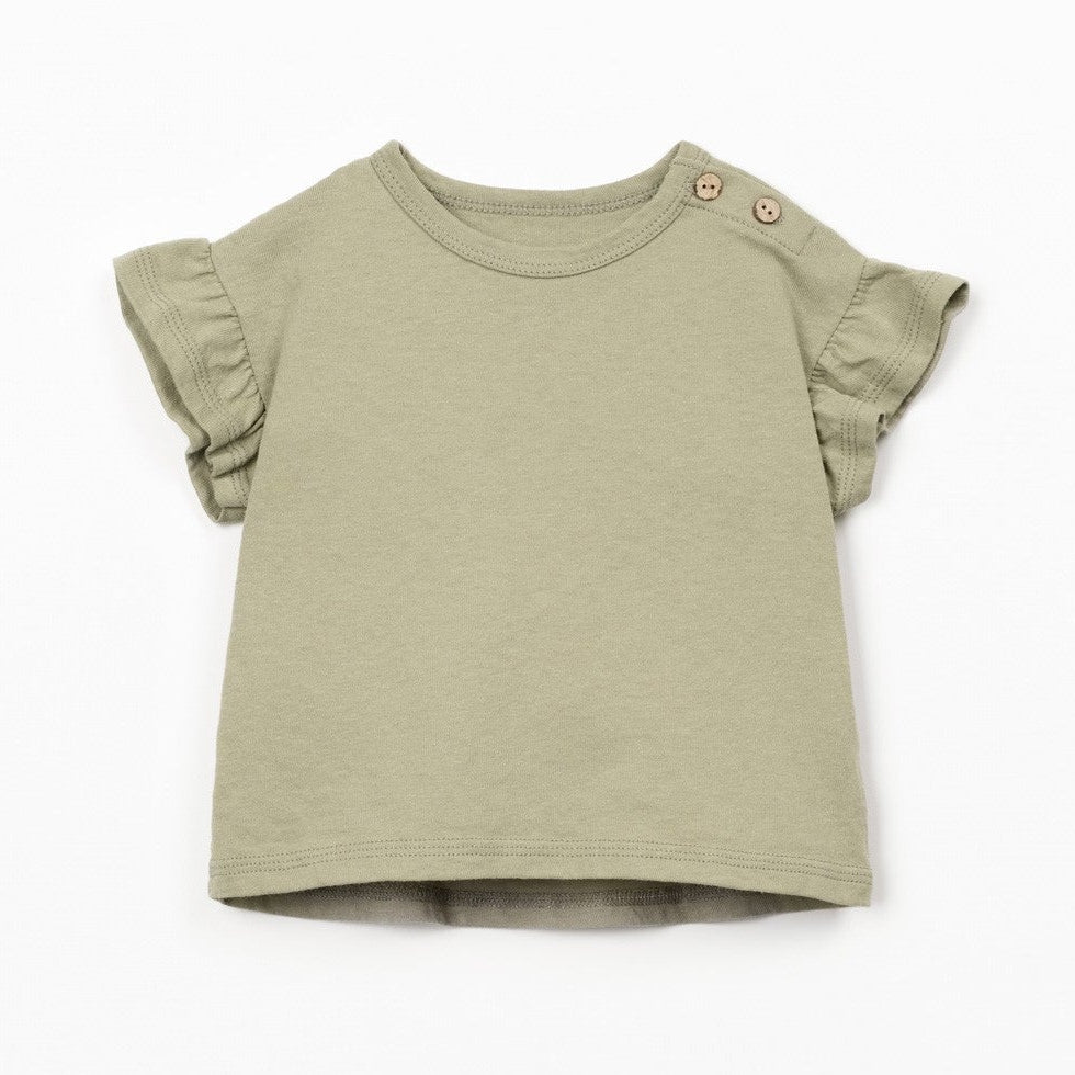 Play Up - Organic Cotton Linen Ruffle T-Shirt - Khaki