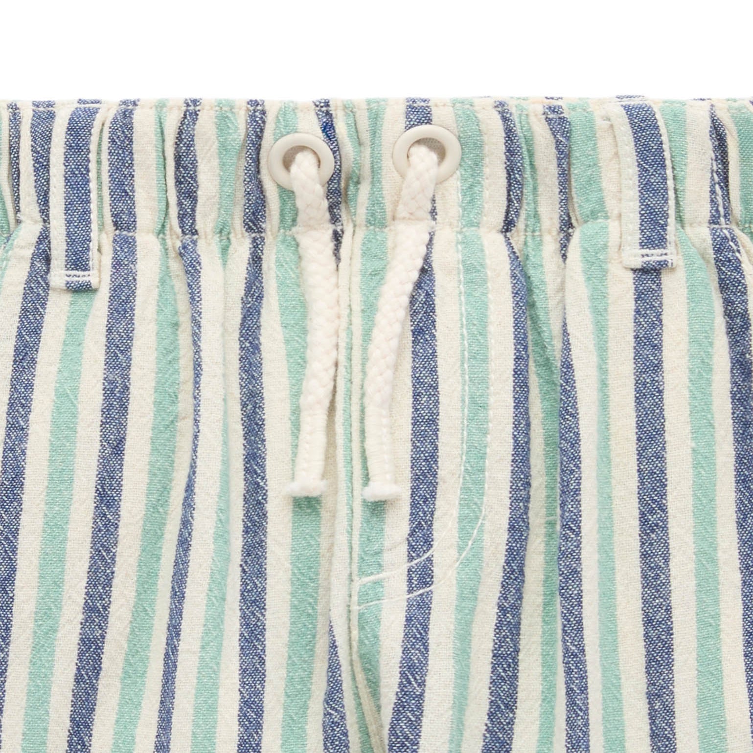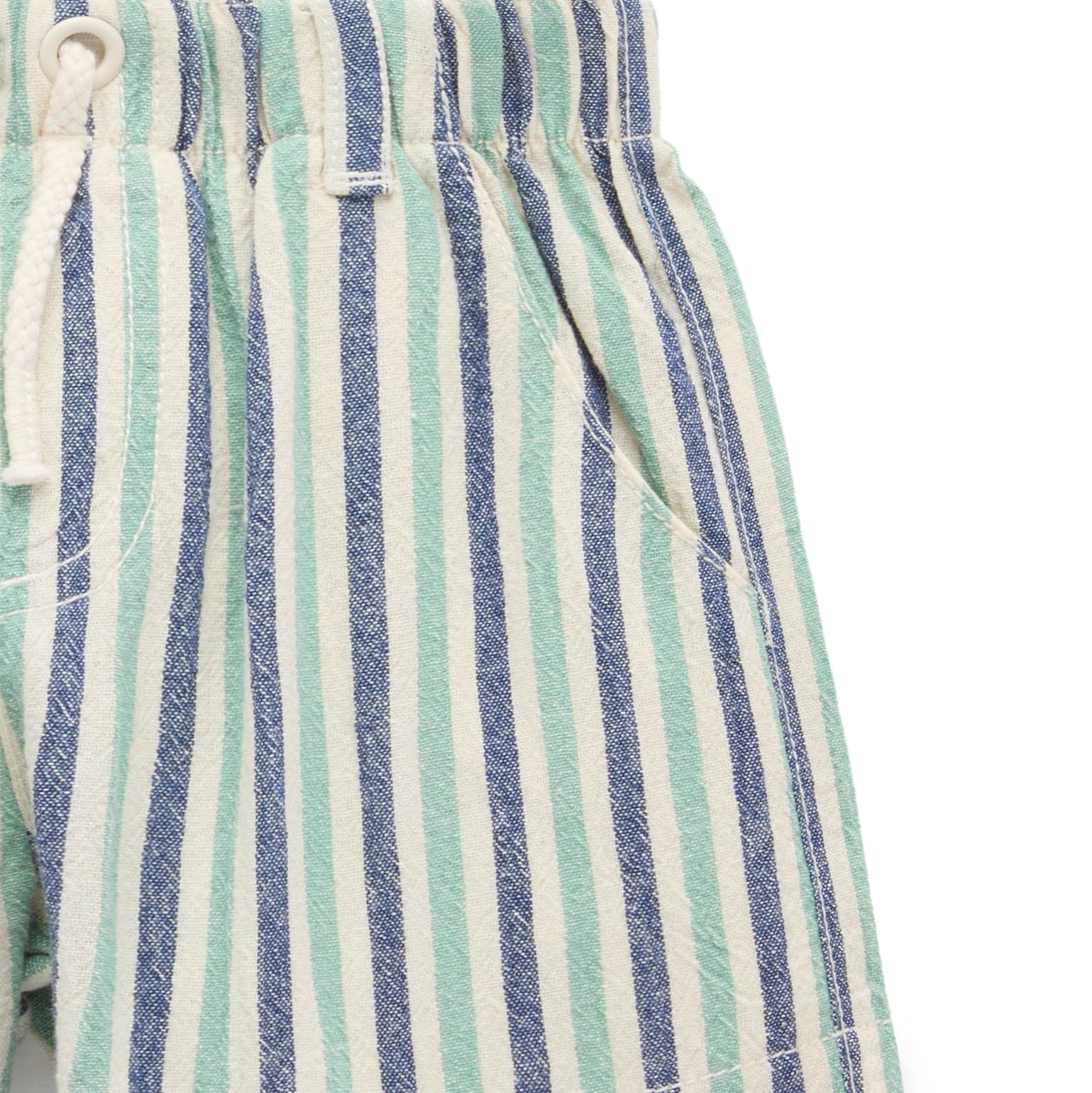 Our Pull On Striped Shorts are a comfy, easy care basic that are great for active little people. Featuring a classic all over stripe, and elasticated waistband for comfort! Made from 100% Organic Cotton. Pair with our Chameleon Relaxed Tee and matching Reversible Striped Bucket Hat for a cute outfit. Elastic waistband for comfort Classic all over stripe Side hip pockets and back pocket Rope drawstring Made from 100% Organic Cotton Seersucker This item is available in both baby & kids sizing. Perfect for matching with siblings, cousins and friends, or purchase multiple sizes for wear in future years.