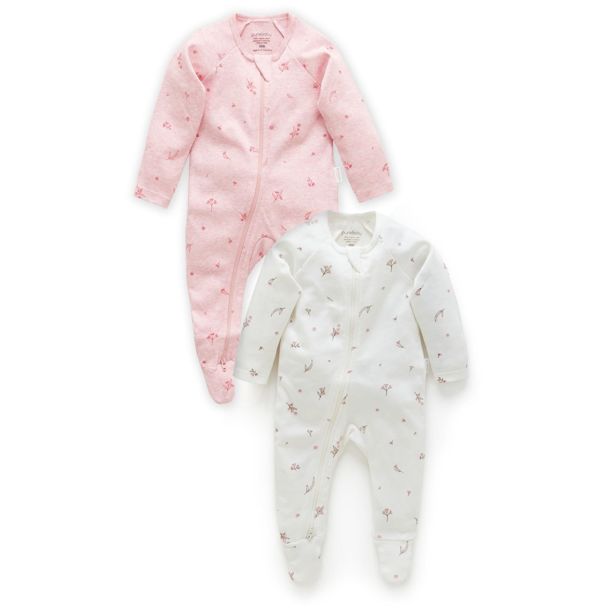Purebaby - Organic Zipper Footie (2-Pack) - Pink Blossom