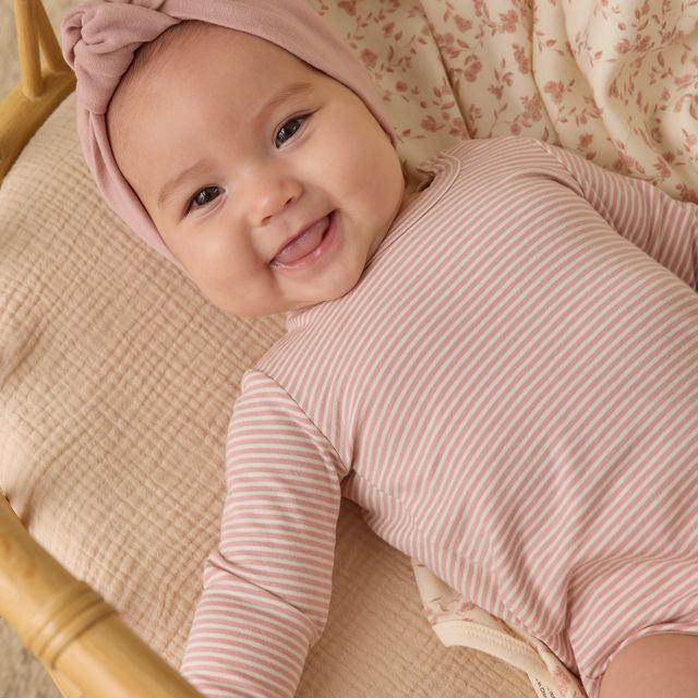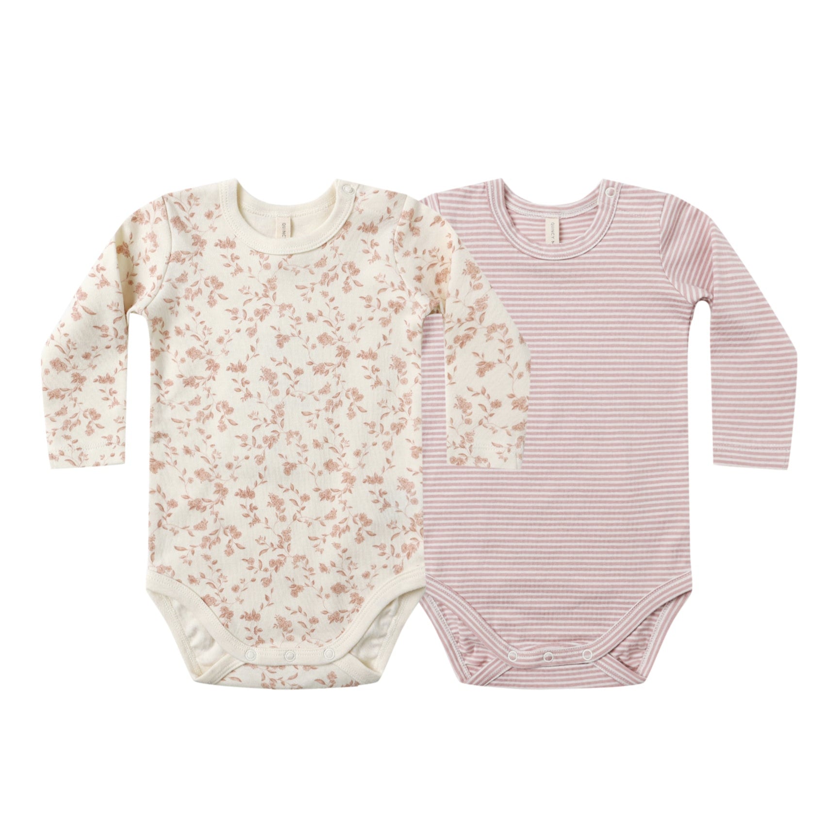 Quincy Mae - Organic Long Sleeve Bodysuit (2-Pack) - French Garden + Rose Stripe