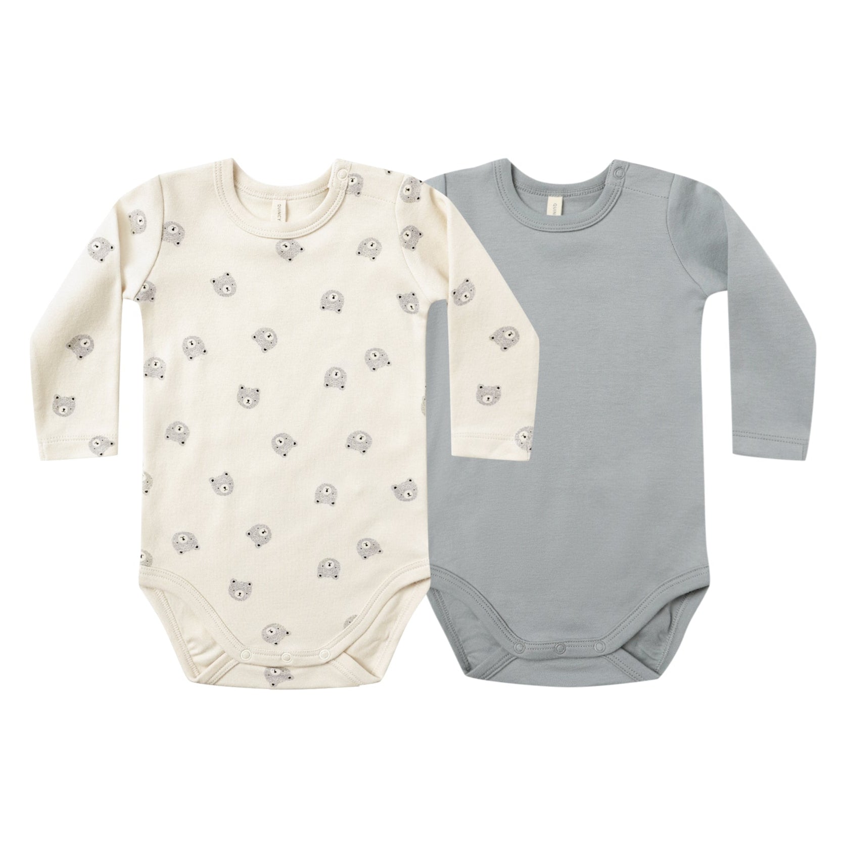 Quincy Mae - Organic Long Sleeve Bodysuit (2-Pack) - Bears + Steel Blue