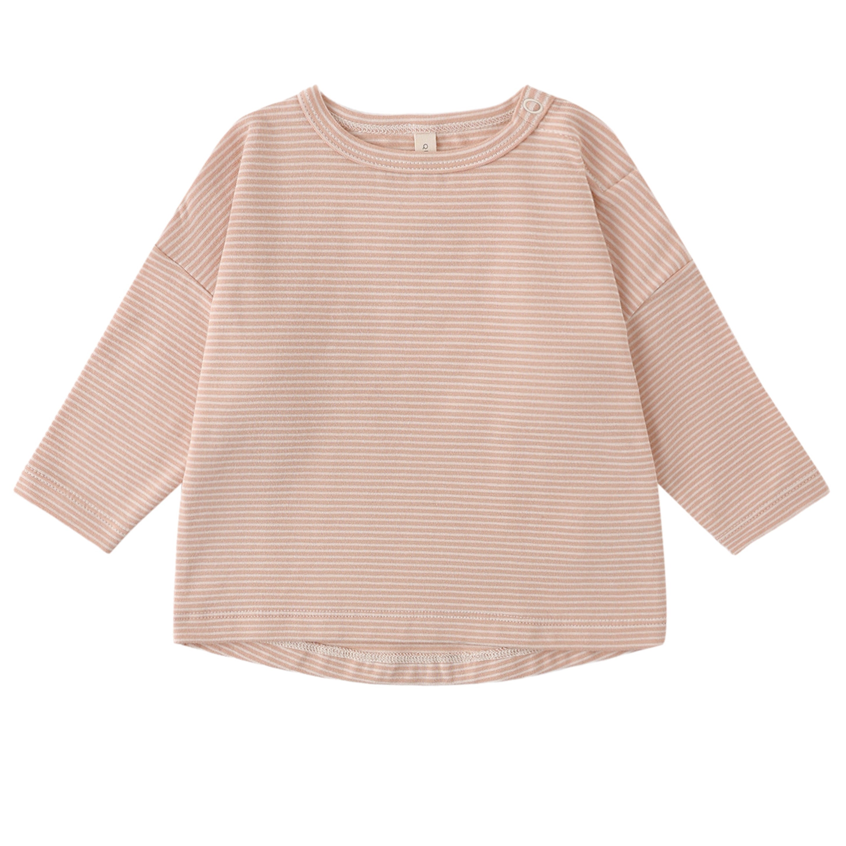 Long sleeve baby tee made from our soft organic brushed jersey fabric. Shoulder snap included in sizes 0-3m - 18-24m for easy changing.