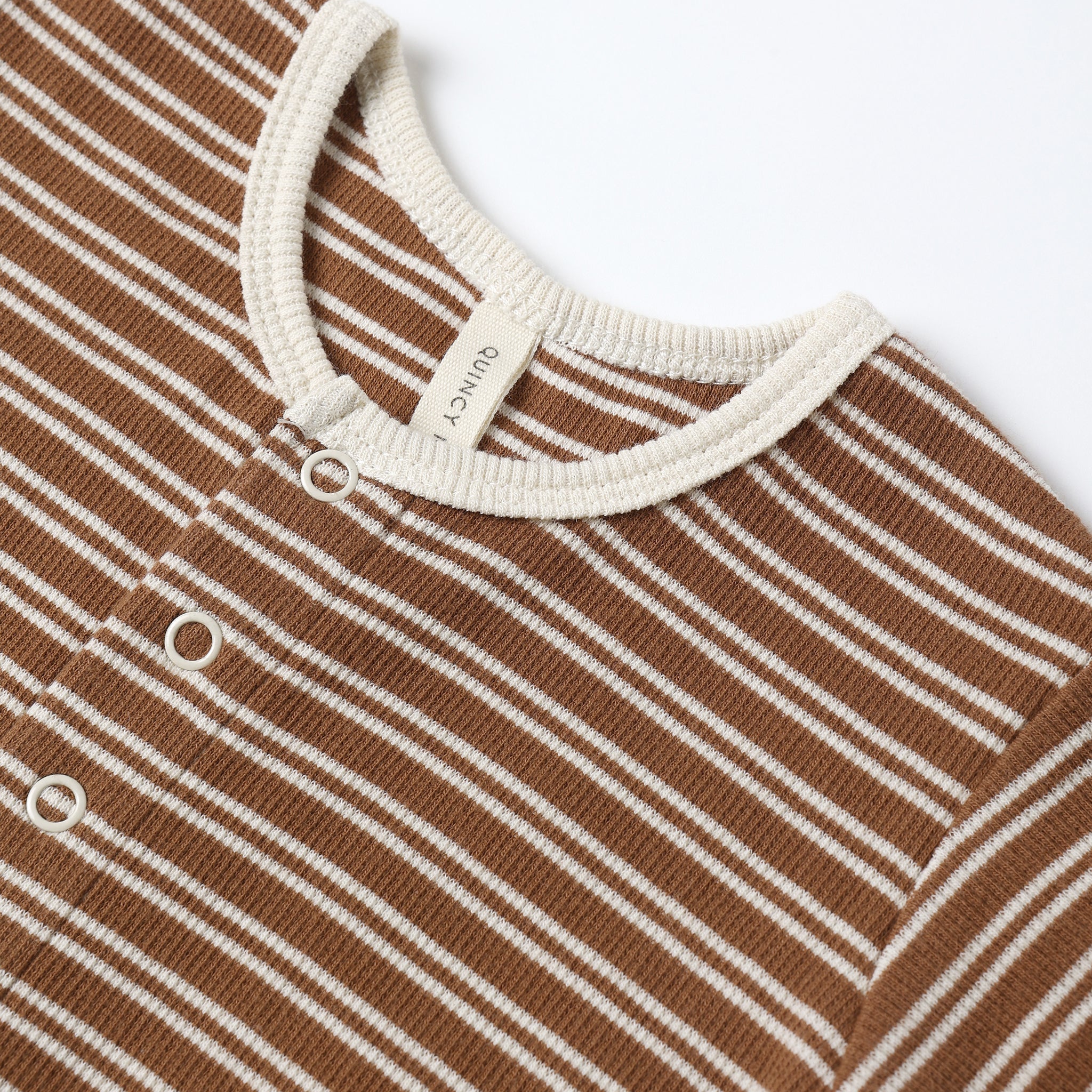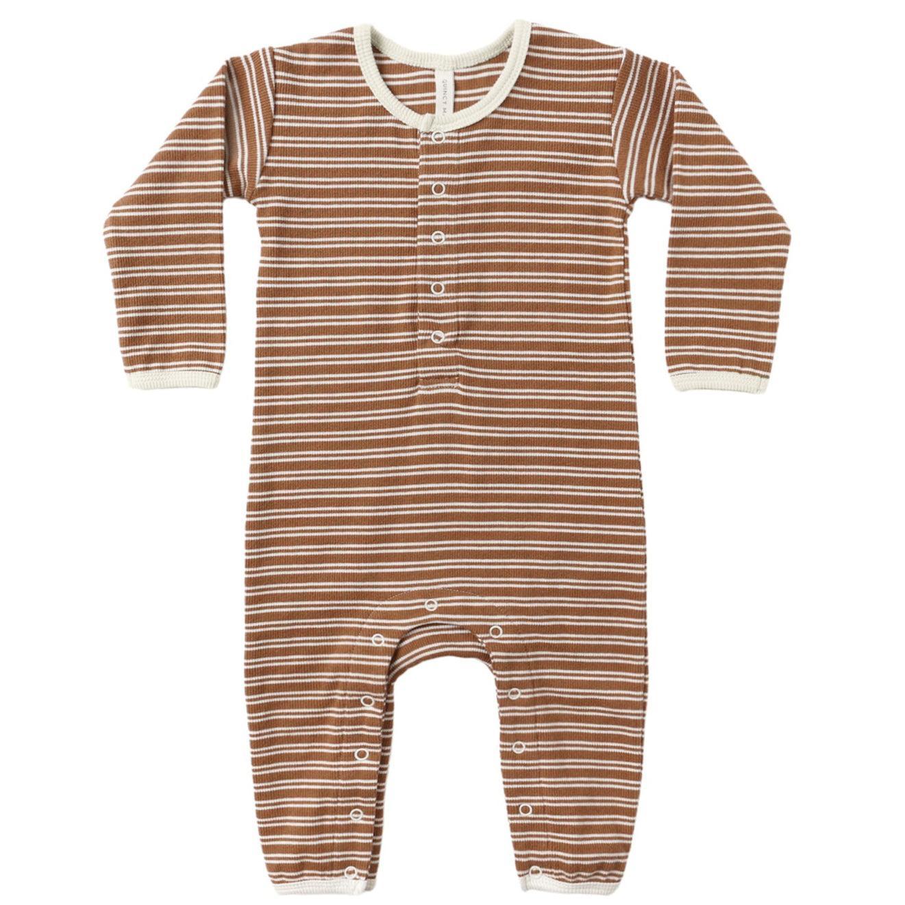 Quincy Mae - Organic Ribbed Romper - Cedar Stripe