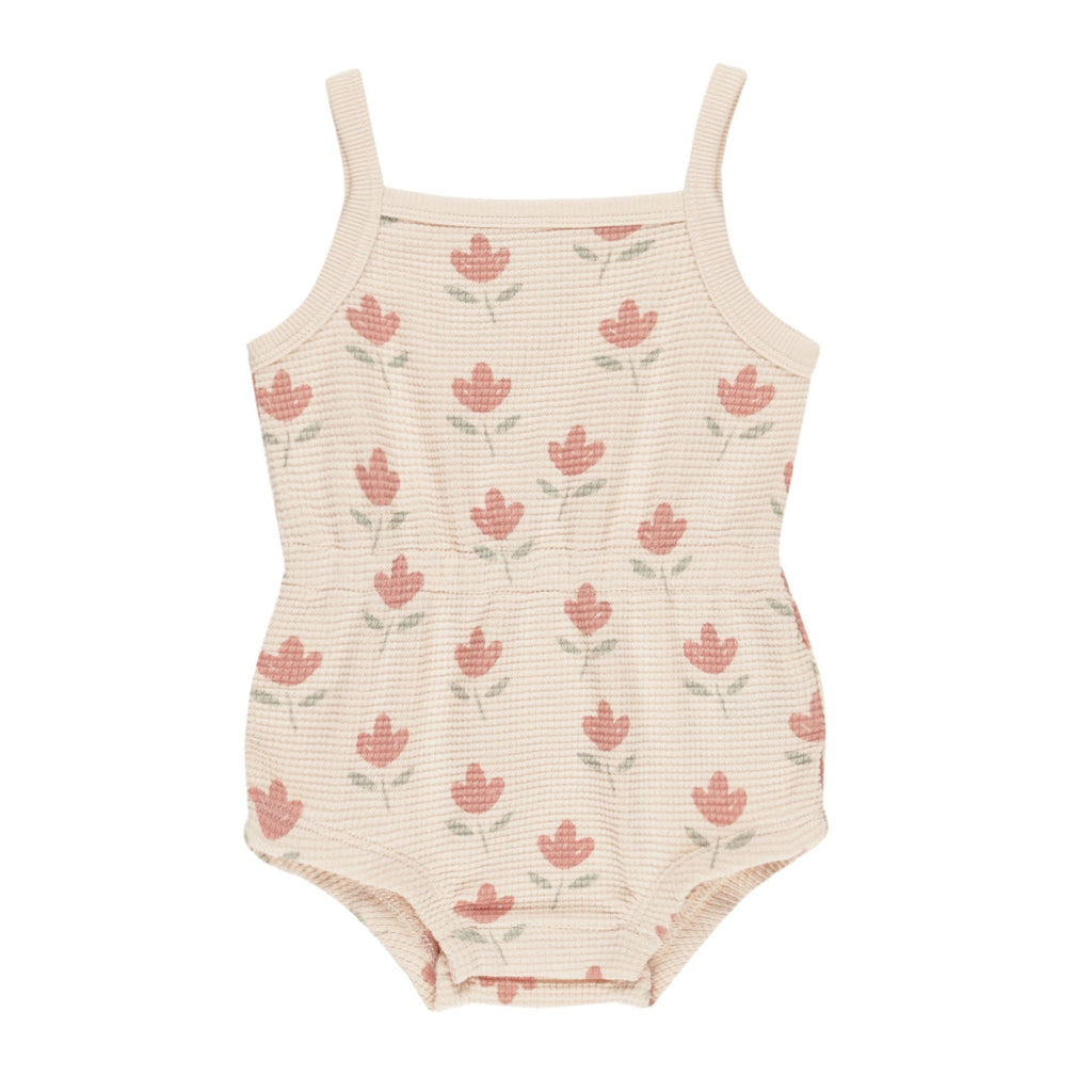 Quincy Mae - Organic Waffle Cinch Romper - Tulips