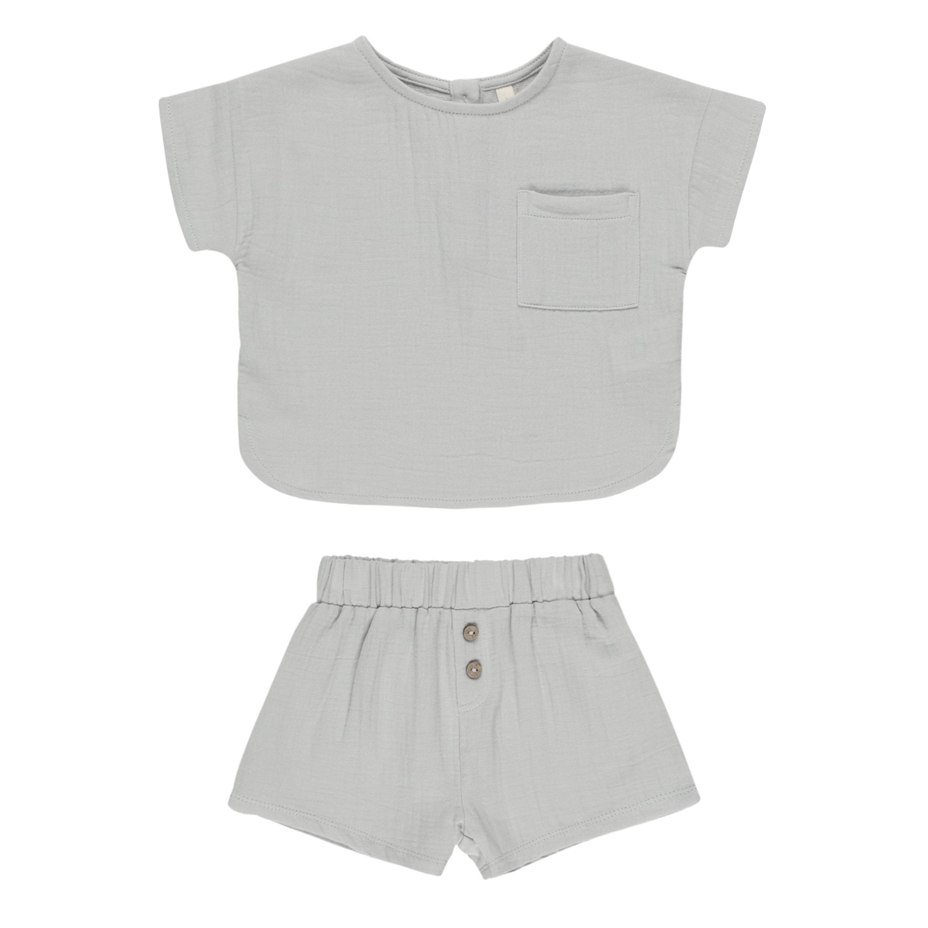 Quincy Mae - Organic Woven Boxy Top + Short Set - Sky