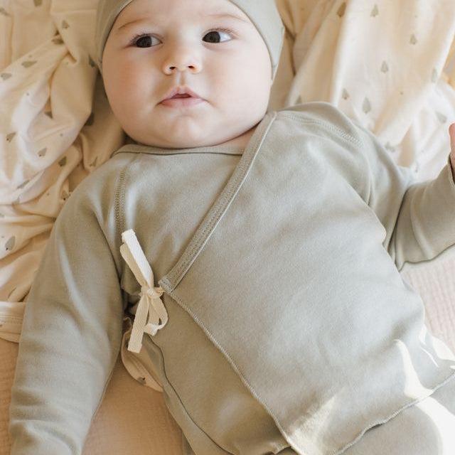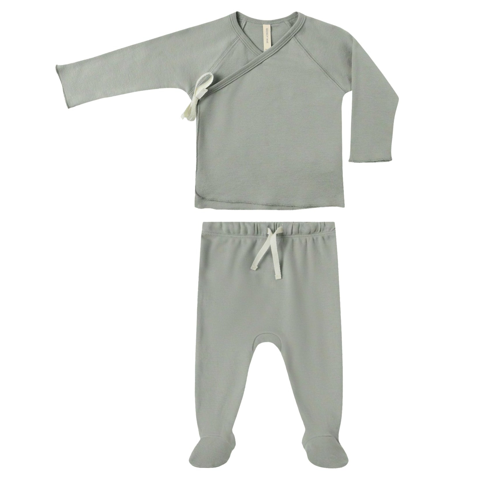 Quincy Mae - Organic Wrap Top + Footed Pant Set - Fern