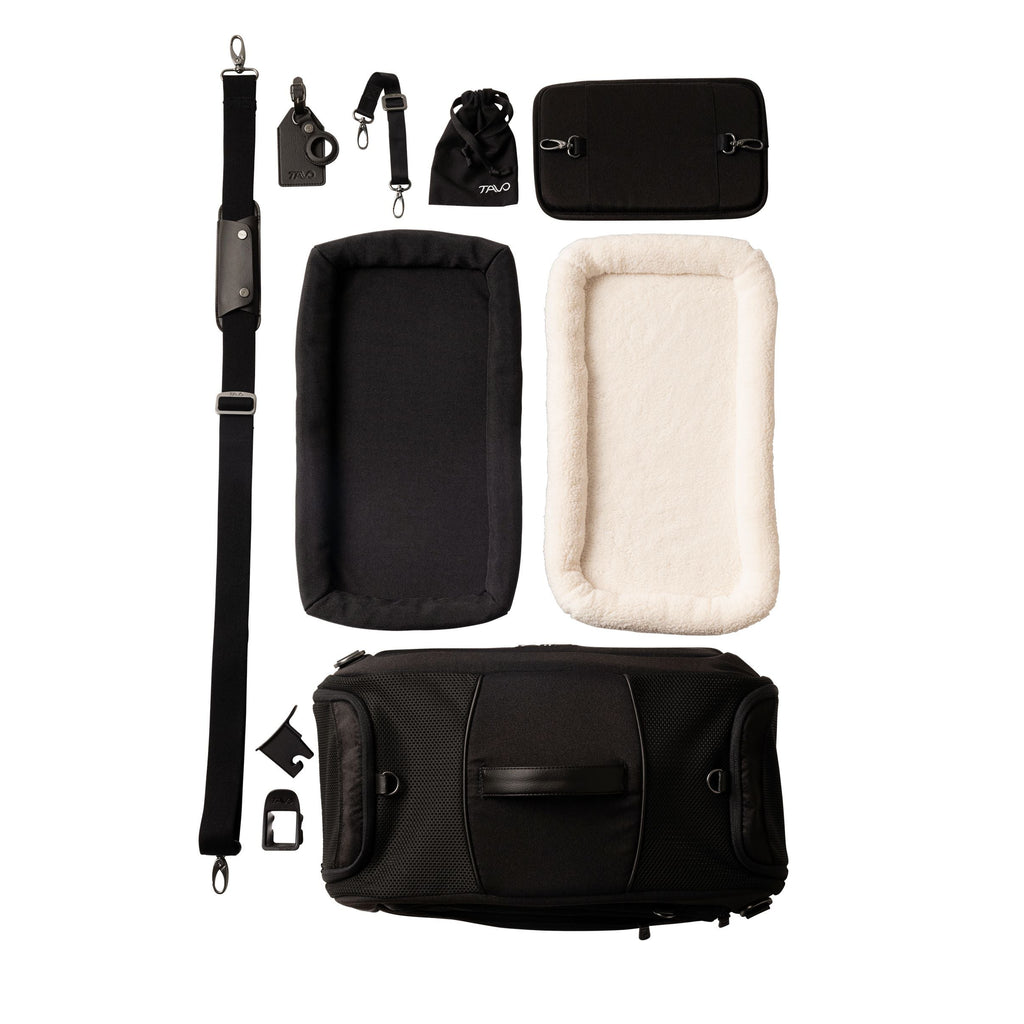 - Airline-compliant carry-on pet carrier and impact-tested pet car seat. (It is important to check your airline's total weight requirements (pet + carrier) before travel as specifications vary by airline.)