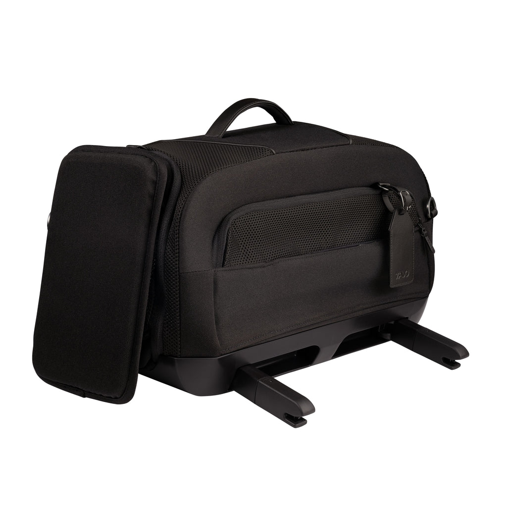 - Flexible frame allows it to fit under airline seats.