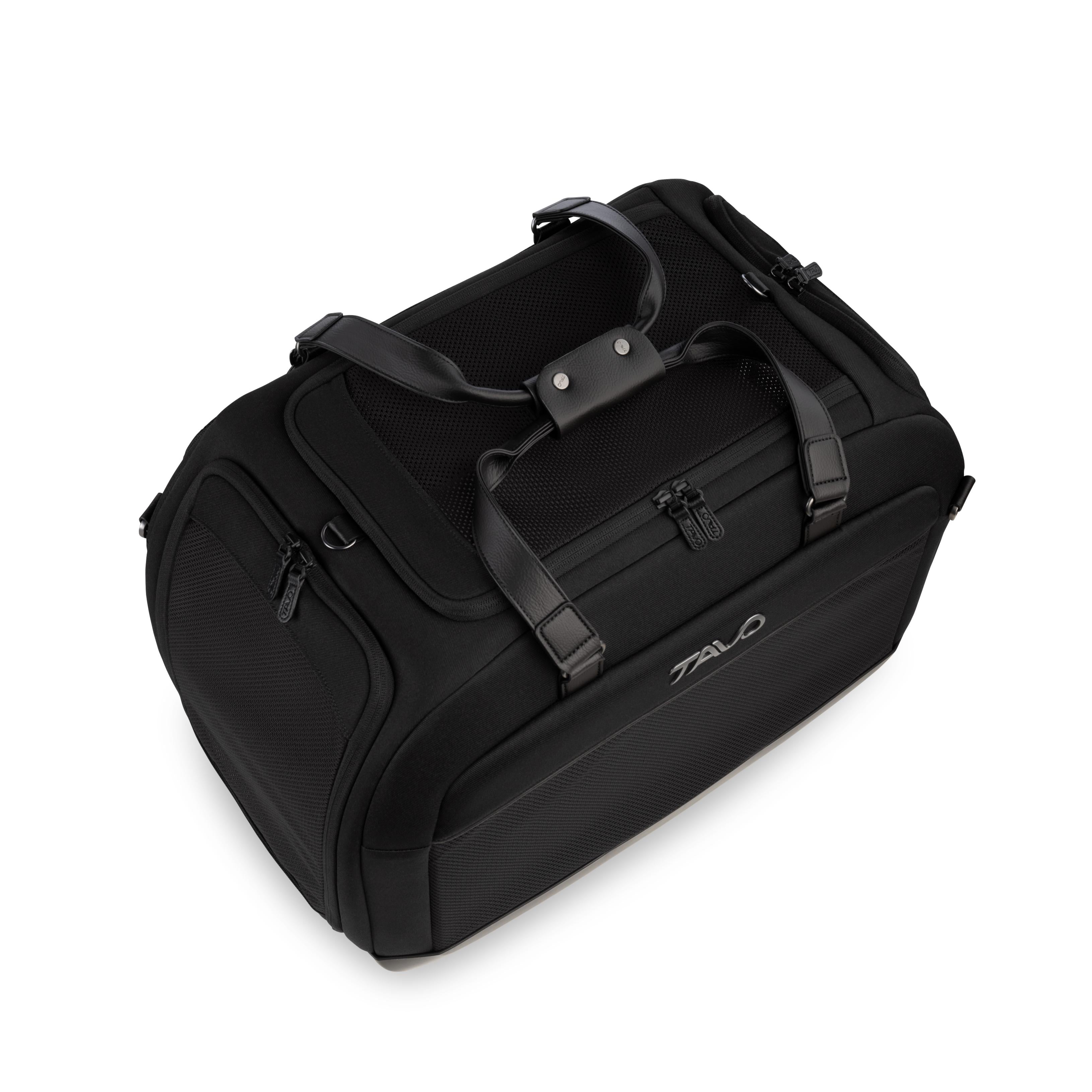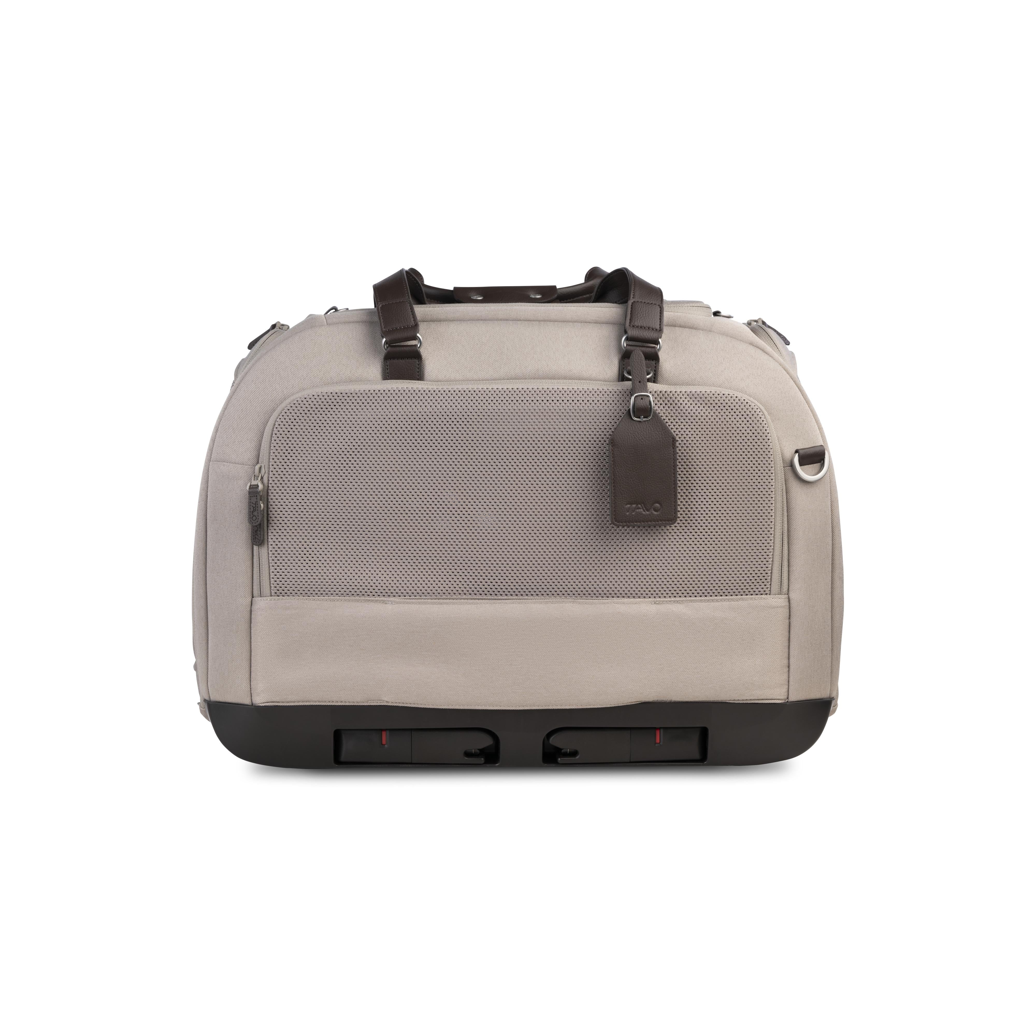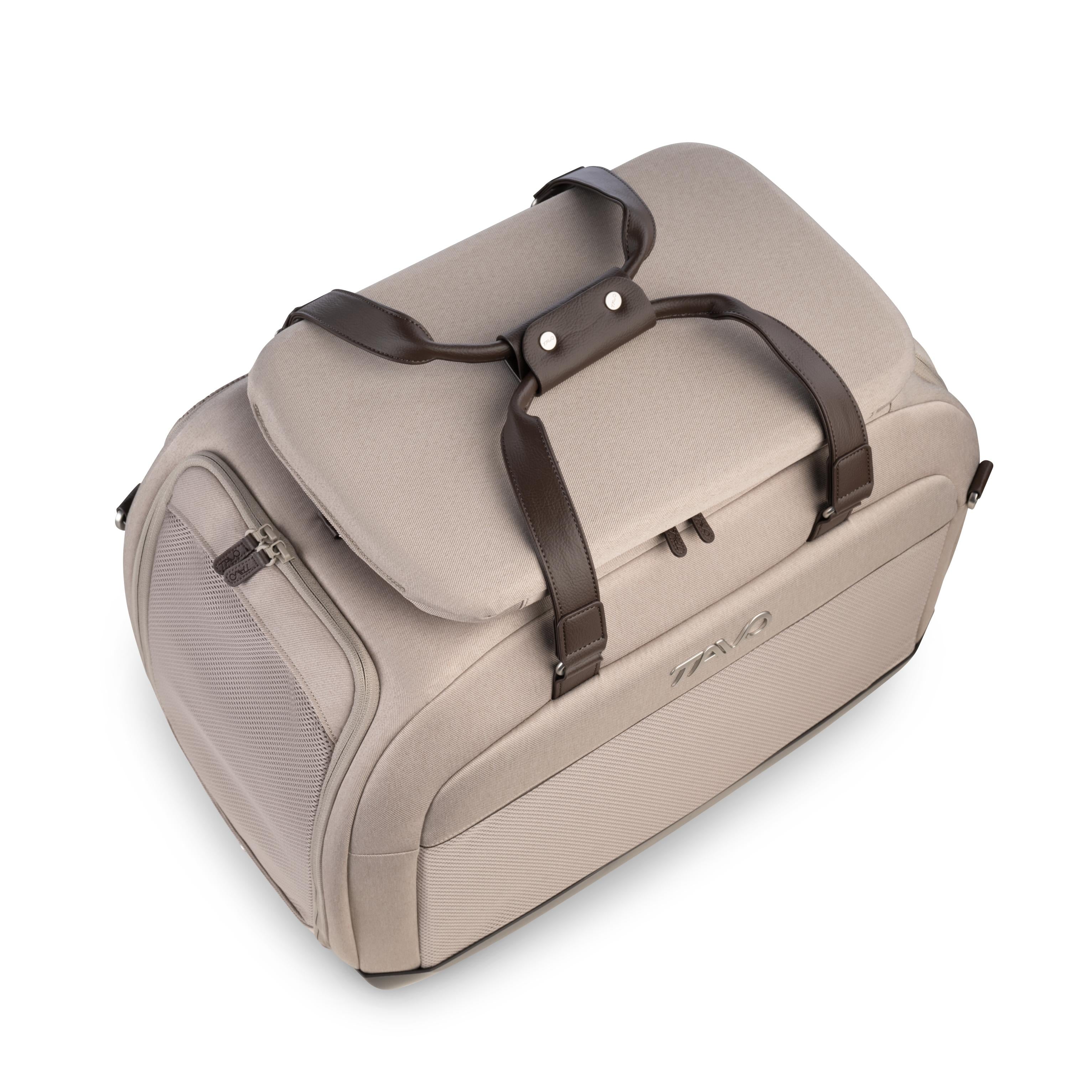 - Detachable shoulder cross strap and top-carry handles wrapped in luxe vegan leather for convenient carry options.